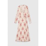 HORNÍ VRSTVA: 100% POLYESTER. PODŠÍVKA: 100% POLYESTER. Růžové šaty s květinovým vzorem jsou perfektní volbou pro každou ženu. Nařasené manžety, elastický pas s možností zavazování a límec dodávají eleganci a třídu. Díky řasení jsou šaty vypasované a zároveň rozšířené, zdůrazňující ženskou siluetu. Vyrobeno z vysoce kvalitního polyesteru, zajišťuje pohodlí při nošení a odolnost. Šaty jsou vhodné jak pro speciální příležitosti, tak i pro každodenní či pracovní nošení. Hodí se k elegantnímu stylu a speciálním příležitostem.