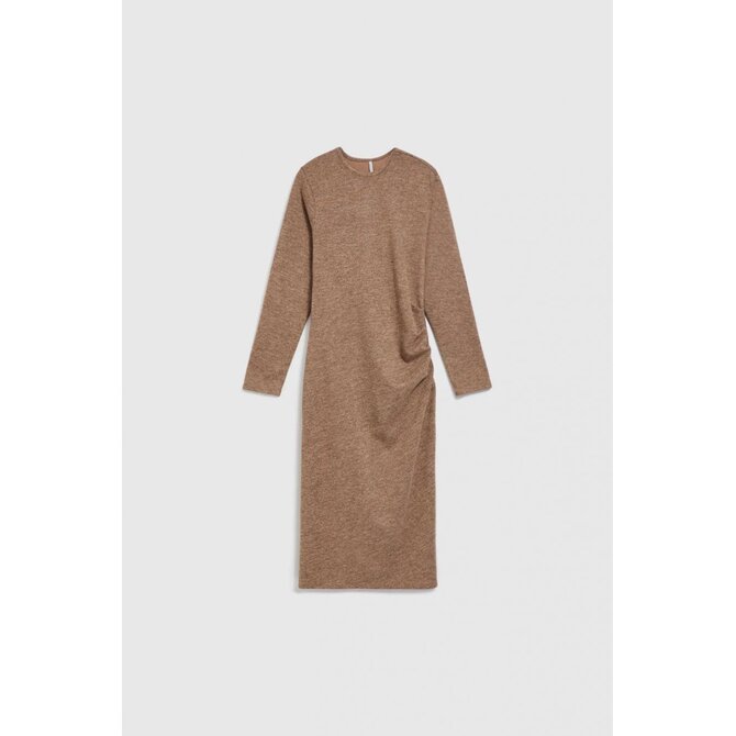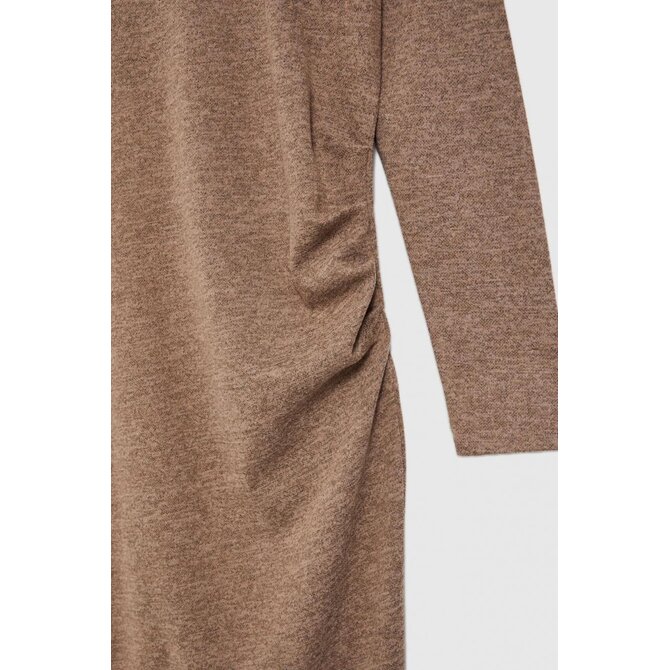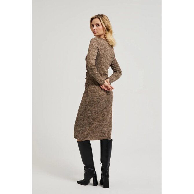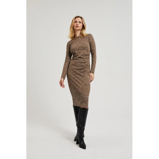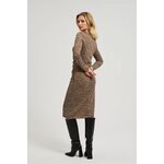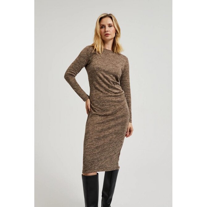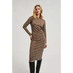 59% POLYESTER, 36% VISKÓZA, 5% ELASTAN Hnědé šaty jsou perfektní volbou pro každou ženu. Hladký polyesterový materiál zaručuje pohodlí a komfort nošení a jemné vrásky dodávají eleganci. Střih šatů je vypasovaný, což zvýrazňuje ženskou siluetu a délka do půli lýtek jim dodává klasický charakter. Šaty jsou vhodné jak na speciální příležitost, tak do práce nebo na každý den. Dá se kombinovat s kulatým výstřihem a bez vzoru, díky čemuž se hodí k různým stylům. Díky své univerzálnosti bude dokonalým doplňkem šatníku každé ženy.