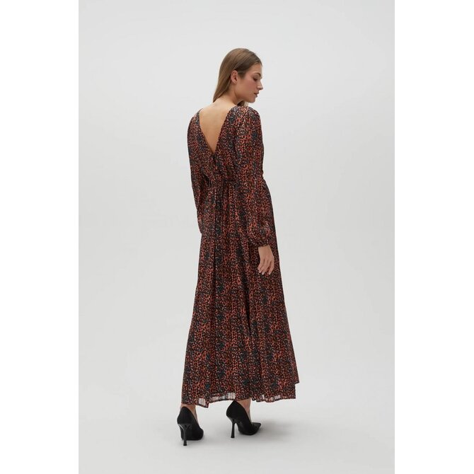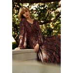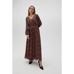 Hnědé maxi šaty s nabíraným rukávem