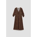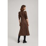 Dámské hnědé šaty jsou skvělou volbou pro ženy, které chtějí vypadat stylově a přitažlivě. Vyrobeno z vysoce kvalitního polyesteru, zaručuje pohodlí při nošení a odolnost. Jeho rysy jsou nařasení na ramenou, které mu dodávají jedinečný charakter, a vypasovaný, lichoběžníkový tvar, zdůrazňující ženskou siluetu. Díky délce do půl lýtek se šaty hodí jak na každodenní, pracovní i formálnější příležitosti. Tyto šaty jsou skvělé pro neformální oblečení a lze je kombinovat s plochými sandály nebo teniskami pro neformálnější vzhled. Může být také dokonalým doplňkem formálního outfitu, který se nosí s elegantními lodičkami a šperky. Jeho hnědá barva v kombinaci se zvířecím potiskem mu dodává jedinečné kouzlo. Šaty mají výstřih do V, která jemně odhaluje krk a dekolt a dodává jemnou ženskost. Neobsahuje žádné další dekorace, takže si jej můžete libovolně stylizovat podle svých preferencí.