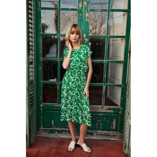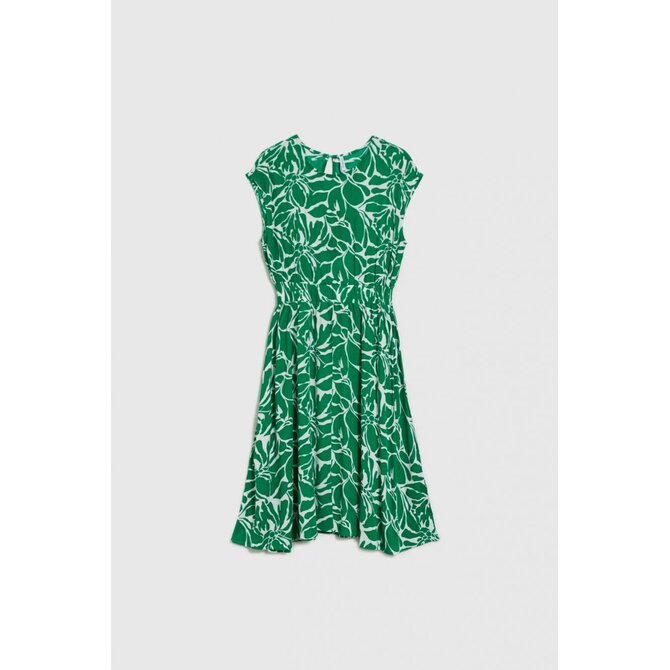 100% VISKÓZA Klasické rozšířené šaty z měkké viskózy v bílé barvě se zelenými květinovými vzory. Elastický pas zdůrazňuje pas, dodává eleganci a pohodlné nošení. Ideální nabídka pro každodenní použití, do práce i pro zvláštní příležitosti. Dodává jemnost a ženské kouzlo. Extrémně všestranné - vhodné jak na pláž, tak na večerní večeři. Délka ke kolenům a kulatý výstřih dodávají šatům nadčasový charakter. Šaty ideální pro různé příležitosti, jak formálnější, tak i neformální schůzky. Perfektně se hodí jak ke klasickým vysokým podpatkům, tak ke sportovním teniskám. Navíc vypadá skvěle v kombinaci s jemnými šperky, čímž vytváří elegantní a stylový outfit.