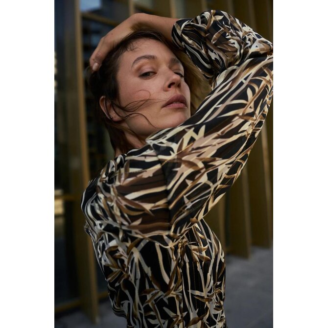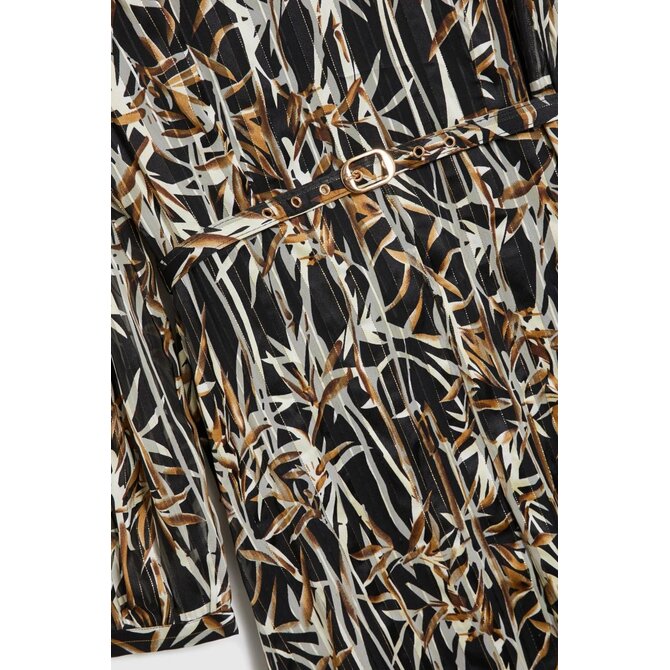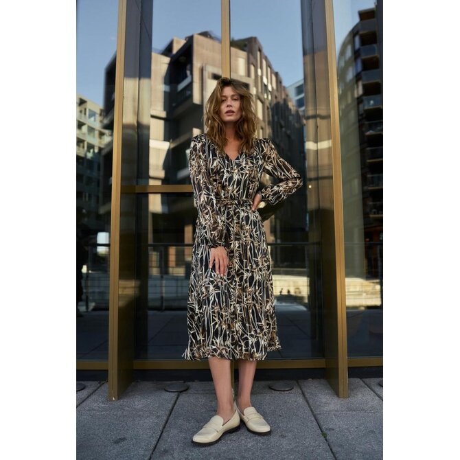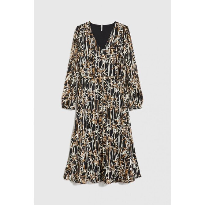 95% POLYESTER, 5% METALICKÁ NIT, PODŠÍVKA: 100% POLYESTER. Šaty midi délky s květinovým potiskem. S dlouhými rukávy a výstřihem do V. Jemný pásek v pase.