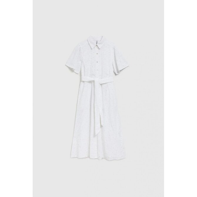 Prolamované šaty se zavazováním v pase, bílé