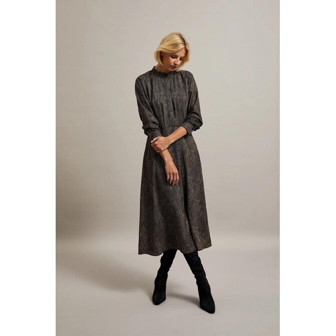 100% POLYESTER Dámské šaty v klasickém designu jsou perfektní volbou pro každou ženu, která si cení elegance a pohodlí. Vyrobeno z vysoce kvalitního polyesterového materiálu, má manžety, zip, knoflíky a poutavé volánky. V černé barvě s jemným tečkovaným vzorem se hodí jak na speciální příležitost, tak do práce nebo na každý den. Šaty ve stylu košile, vypasované a rozšířené, dokonale zdůrazní ženskou postavu. Módní stojáček, zip a knoflíky dodávají celku eleganci. Tento jedinečný model se bude hodit jak na elegantní příležitosti, tak do kanceláře. Skvěle se hodí ke klasickým jehlovým botám nebo kozačkám na vysokém podpatku. Dá se kombinovat jak s elegantním sakem, tak s každodenním svetrem. Šaty po kotníky dodají vašemu outfitu eleganci a eleganci.