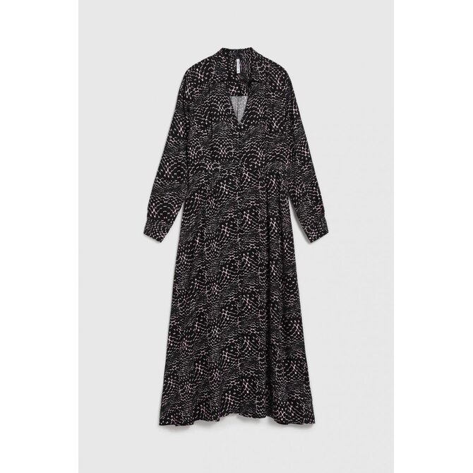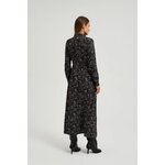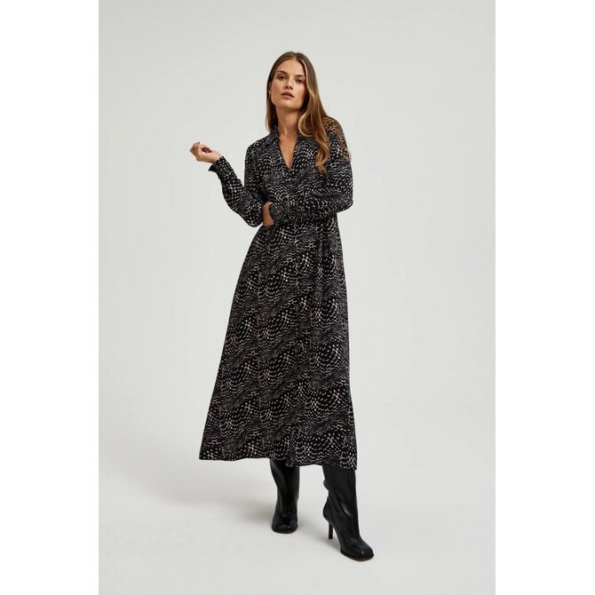 Dámské šaty v klasických košilových šatech, ideální jak pro zvláštní příležitosti, tak pro každý den. Z měkké viskózy v černé barvě, vypasovaný střih, délka do půl lýtek. Manžety, límeček, výstřih do V a knoflíky dodávají eleganci a volánky dělají šaty velmi ženské. Šaty se budou skvěle hodit na rande, setkání s přáteli nebo rodinné oslavy. Můžete ji spárovat s klasickými podpatky a kabelkou na elegantní příležitosti nebo s teniskami a džínovou bundou pro příležitostnější příležitosti. Tyto šaty jsou dokonalou kombinací elegance a ležérního stylu.