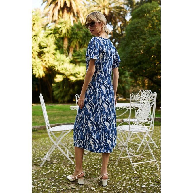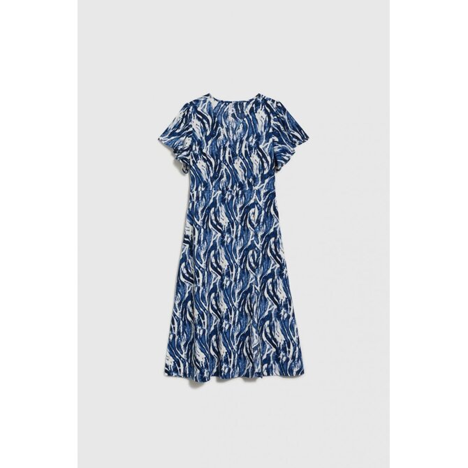 Modré midi šaty s krátkým rukávem