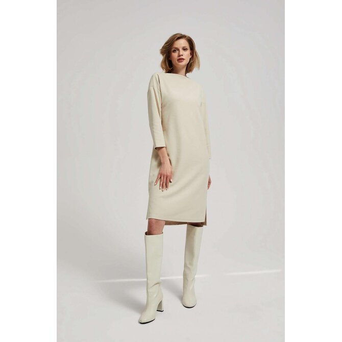 Dámské šaty v béžové nebo ecru jsou perfektní volbou pro všechny ženy, které chtějí vypadat stylově a cítit se pohodlně. Šaty jsou vyrobeny z vysoce kvalitního polyesteru, hladké a bez vzoru, díky čemuž jsou vhodné pro mnoho různých stylů. Díky pletené struktuře materiálu jsou šaty měkké a příjemné na dotek. Volný, ale zároveň rovný střih zajišťuje volnost pohybu a perfektně sedí na postavě.
