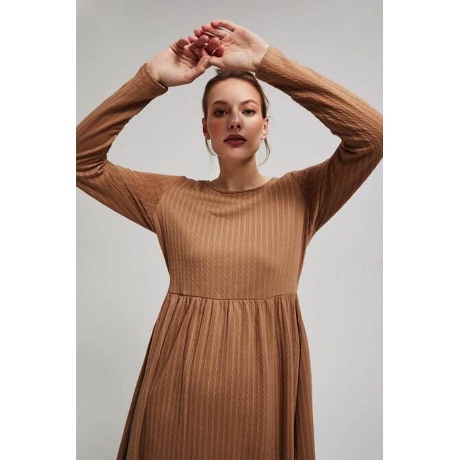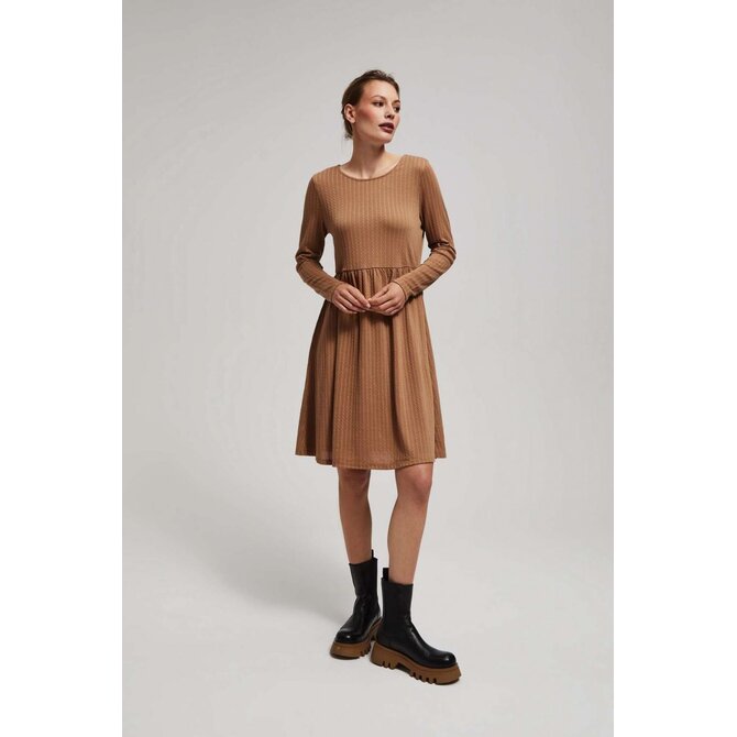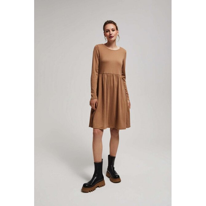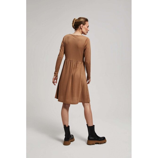 Šaty jsou perfektní volbou pro každou ženu. Model je vyroben z vysoce kvalitního polyesteru, který zajišťuje pohodlí při nošení a odolnost. Šaty mají navíc elastický pas, který zvýrazňuje pas. Díky rozšířenému střihu jsou šaty extrémně ženské a elegantní. Perfektní pro každodenní použití, do práce i pro různé příležitosti. Šaty mají kulatý výstřih, který krásně zvýrazní krk a dekolt a délka do půli stehen je velmi univerzální a hodí se k různým siluetám. Tento klasický model je perfektním doplňkem vašeho šatníku a hodí se jak k bytům, tak na jehlových podpatcích. Nenahraditelný kousek oblečení, který podtrhne vaši ženskost a styl.