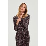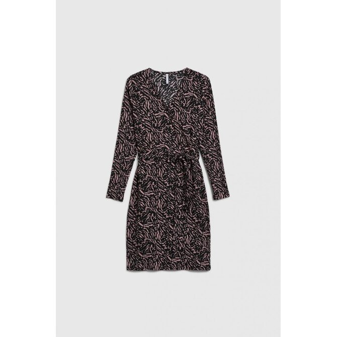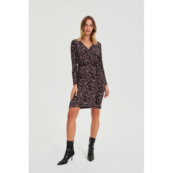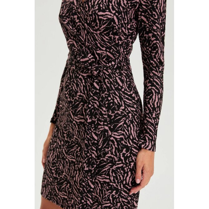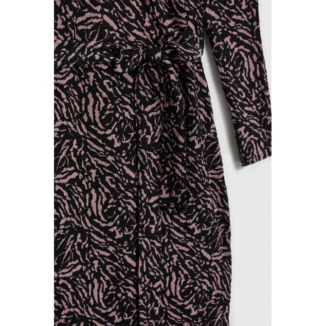 93% POLYESTER, 7% ELASTAN Tyto černo-růžové šaty zaujmou svým zářivým potiskem a ženským střihem. Přiléhavá, rovná silueta zdůrazňuje siluetu, zatímco pásek v pase dodává lehkost a volnost pohybu. Dlouhé rukávy a výstřih do V dodávají jemnou eleganci a činí každý okamžik jedinečným. Jemná, prodyšná tkanina příjemně obepíná pokožku a zajišťuje celodenní pohodlí – jak během intenzivních schůzek, tak i při chvílích relaxace. Ideální pro každodenní nošení, do práce nebo na spontánní procházku městem. Tyto potištěné šaty se krásně hodí ke klasickým kotníkovým botám, teniskám nebo lehkému trenčkotu. Jednoduše doplňte oversized sako pro ležérní vzhled, který je ideální pro obchodní schůzku nebo odpolední výlet s přáteli. Stylové, ženské a všestranné – umožní vám cítit se sebevědomě a jedinečně v každé situaci.
