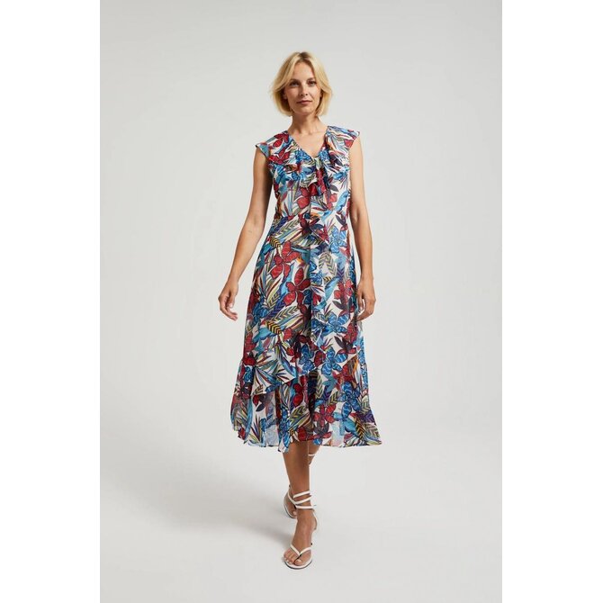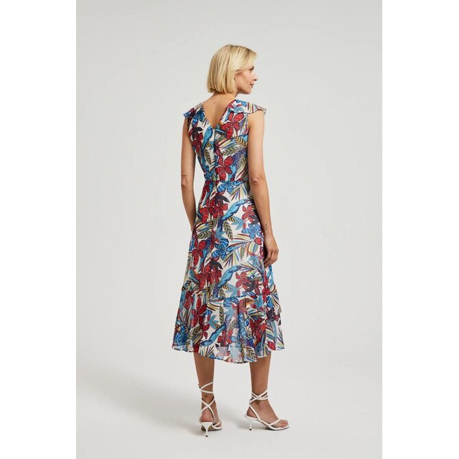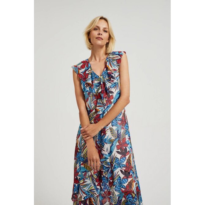 MATERIÁL 1: 100% POLYESTER, MATERIÁL 2: 100% POLYESTER Květované šaty jsou perfektní volbou pro každou ženu. Vyrobeno z vysoce kvalitního polyesteru s podšívkou pro pohodlné nošení. Šaty mají zapínání na zip, volánky a efektní volánky, které jim dodávají jedinečné kouzlo. Díky svému klasickému střihu se hodí jak pro každodenní nošení, tak pro zvláštní příležitosti. Vypasované asymetrické květinové šaty jsou perfektní volbou pro ženy, které oceňují minimalismus a boho styl. Šaty v tmavě modré, zelené a červené barvě zdobené rostlinným motivem s listy a květy dodají vašemu šatníku svěžest a originalitu. Ideální jak na pláž, tak na pracovní schůzku. Díky délce do půli lýtek jsou šaty univerzální a hodí se k mnoha stylům.