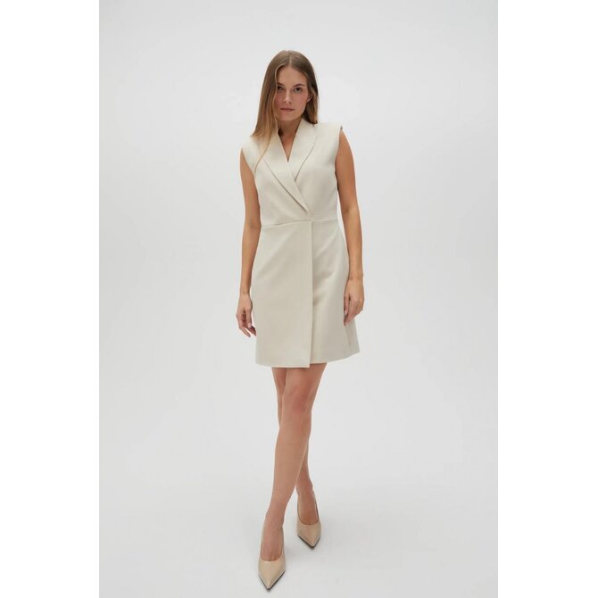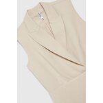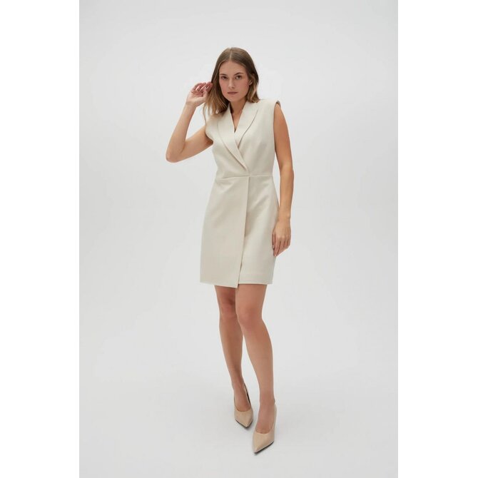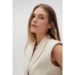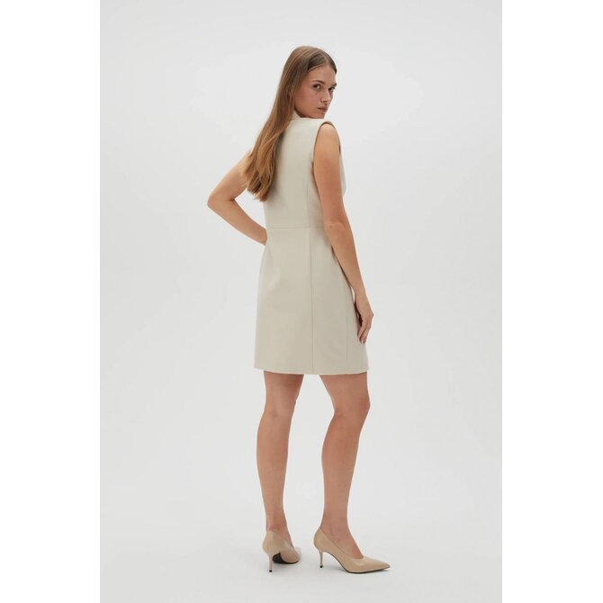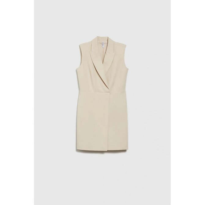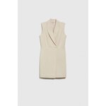 VRCHNÍ VRSTVA: 63% POLYESTER, 33% VISKÓZA, 4% ELASTAN. PODŠÍVKA: 100% POLYESTER. Šaty krémové barvy, bez vzoru, z hladkého materiálu. Model je vypasovaný, má zapínání na zip a elegantní límec s výstřihem do V. Extrémně klasické a univerzální, ideální pro zvláštní příležitost i do práce. Tyto šaty se budou hodit na mnoho příležitostí, formálních i neformálnějších. Skvěle se bude hodit k lodičkám na vysokém podpatku nebo balerínkám a vytvoří elegantní nebo ležérní vzhled.