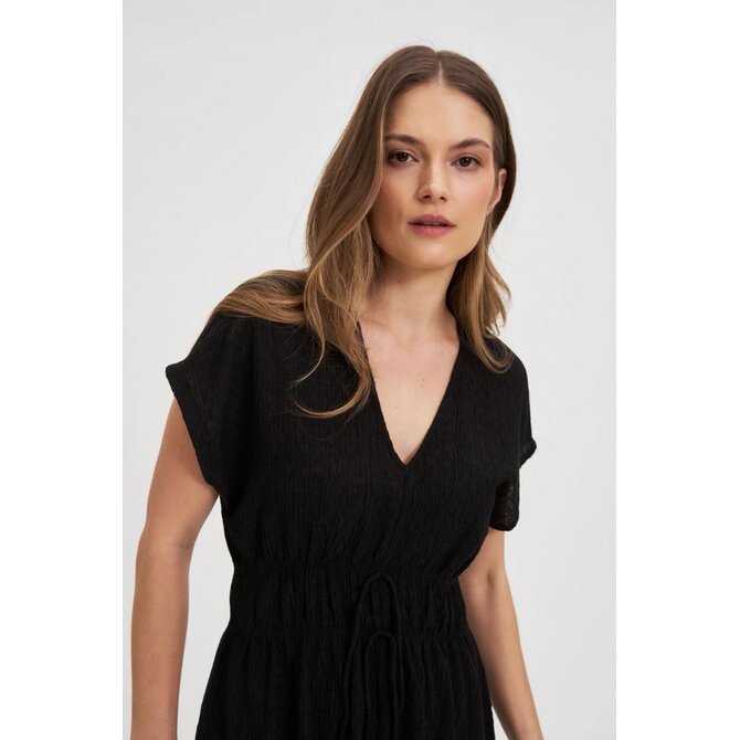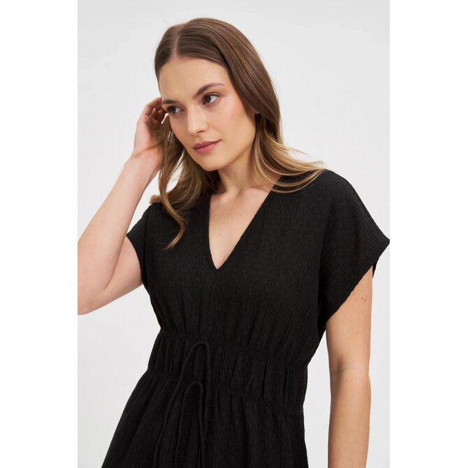 Modelka na obrázku: výška - 173 cm, rozměry 82/63/92, velikost v Moodo - horní část-XS, spodní část-S