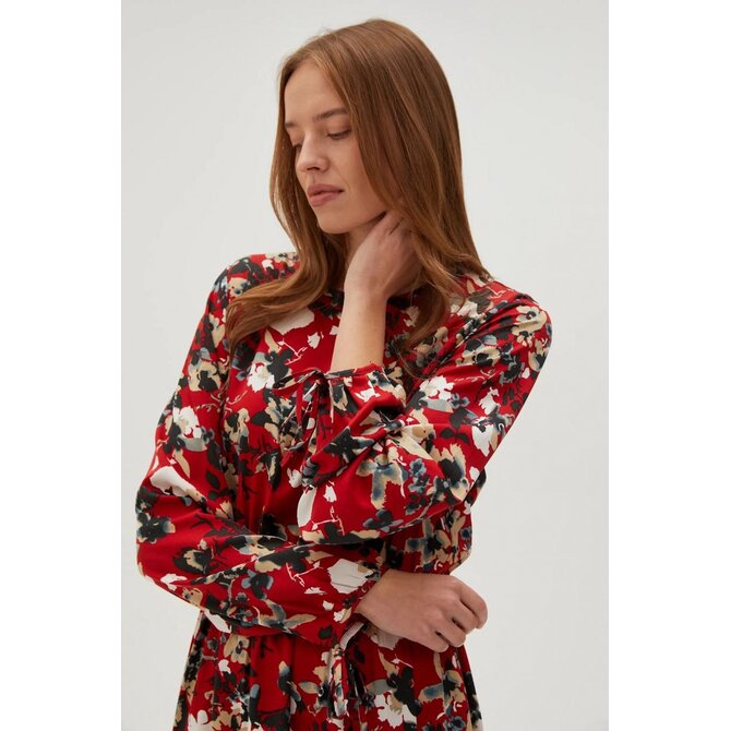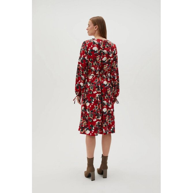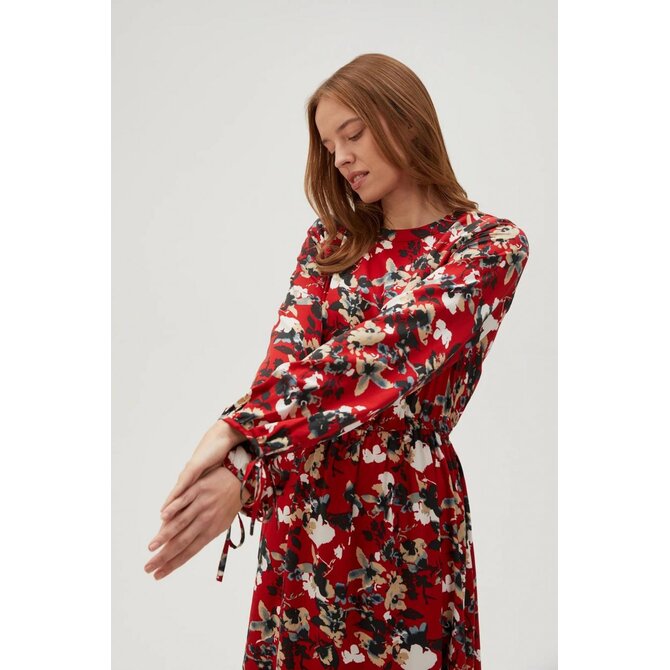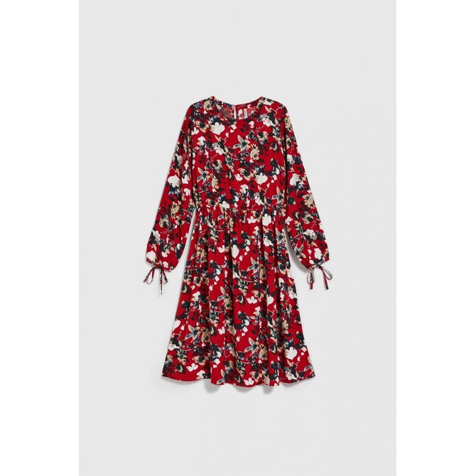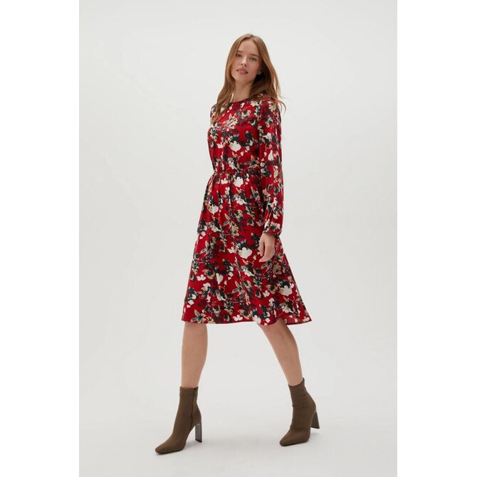 100% POLYESTER Červené šaty s jemným květinovým motivem. Nařasení dodává šatům třídu a eleganci. Klasický, přesto vintage model, ideální jak pro zvláštní příležitosti, tak pro každodenní práci. Rozevřené šaty, sahající ke kolenům, s kulatým výstřihem. Vynikající volba pro mnoho různých příležitostí, jak pro obchodní jednání, tak pro romantické večeře nebo párty s přáteli. Hodí se k podpatkům, balerínkám i teniskám, takže ho můžete nosit v závislosti na příležitosti a vašem vlastním stylu. Ideální nabídka pro ženy, které ocení pohodlí a eleganci v jednom.