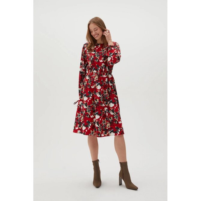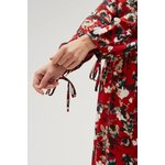 Květinové šaty s nabíranými rukávy červené