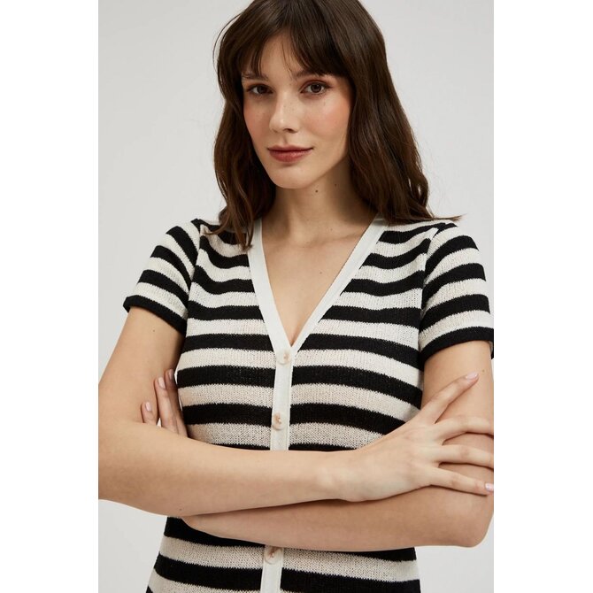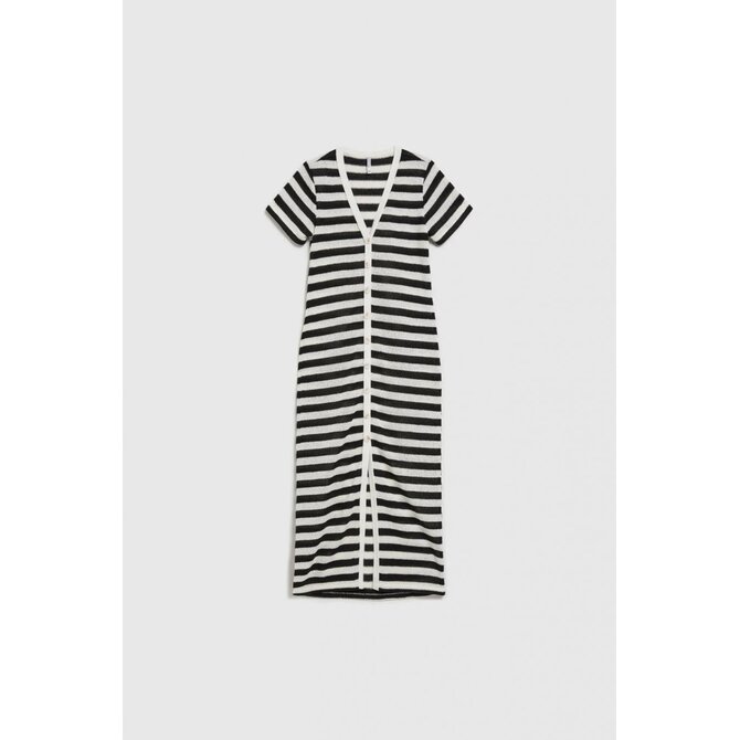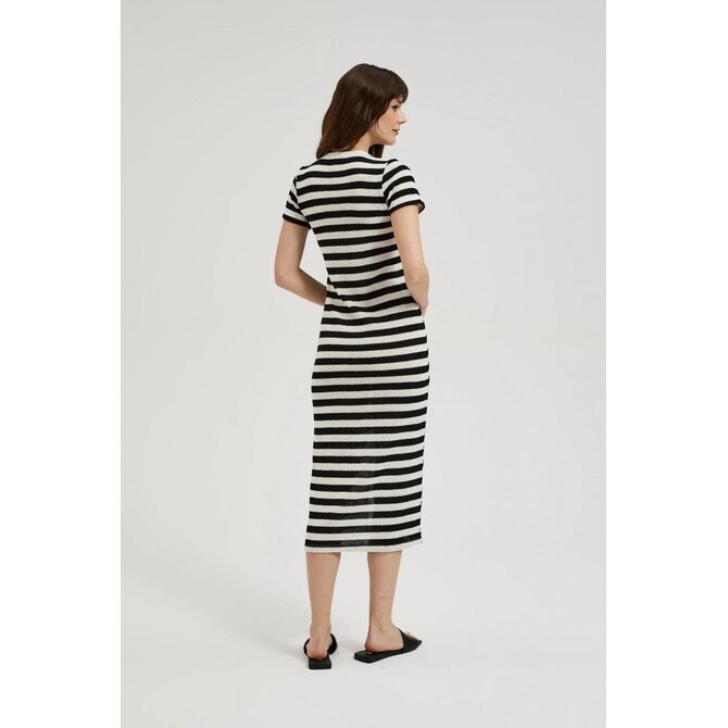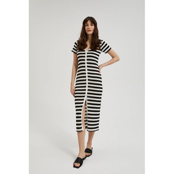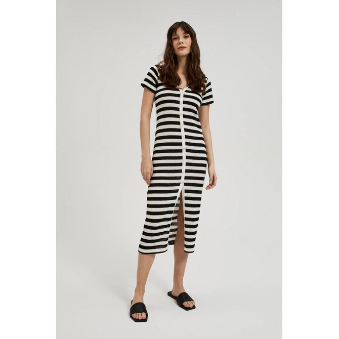 Pruhované šaty na knoflíky, černé a béžové