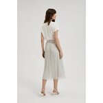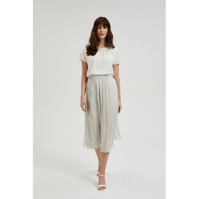 100% POLYESTER. Podšívka 100% POLYESTER. Šedá sukně je mimořádně stylový a elegantní výrobek, který bude dokonalým doplňkem vašeho šatníku. Sukně je vyrobena z vysoce kvalitního polyesteru a je nejen odolná, ale také pohodlná na nošení. Lichoběžníkový střih zdůrazňuje ženskou siluetu a zároveň zajišťuje volnost pohybu. Díky elastickému pasu se sukně dokonale přizpůsobí tělu a zajistí maximální pohodlí. Šedá sukně bez vzoru je navíc extrémně univerzální, takže ji můžete nosit při mnoha různých příležitostech. Je ideální jak pro každodenní styling, tak pro formálnější příležitosti. Můžete ho spárovat s elegantní košilí a klasickými podpatky pro elegantní vzhled, nebo ho nosit s lehkým svetrem a teniskami pro ležérní, ale stylový outfit.