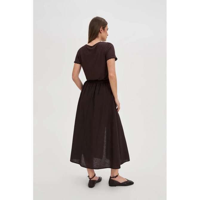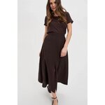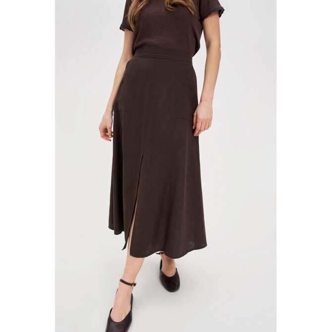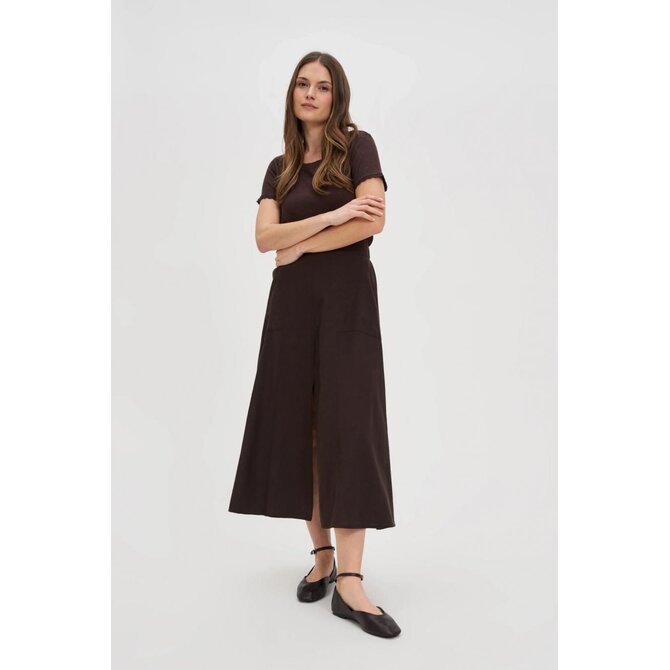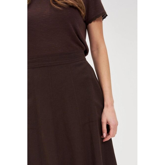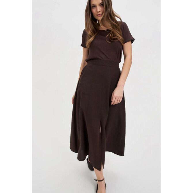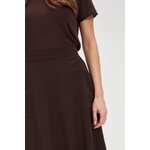 85% BAVLNA, 15% LEN. Tato hnědá sukně s hladkým povrchem je perfektní volbou pro ženy, které si cení pohodlí a všestranného stylu. Lichoběžníkový střih umožňuje volný pohyb, zatímco délka do poloviny lýtek decentně zdůrazňuje siluetu. Elastický pas zajišťuje perfektní střih a celodenní pohodlí. Praktické kapsy dodávají funkčnost. Dominantním materiálem je měkká, prodyšná bavlna, která zajišťuje pohodlné nošení i v těch nejnáročnějších dnech. Ideální pro každodenní nošení, do práce, na schůzky s přáteli, ale i na procházky po městě. Krásně se hodí ke klasické košili, svetru, jednoduchému topu nebo přiléhavému saku. Hodí se ke kotníkovým botám, teniskám nebo balerínkám a vytváří tak vždy módní a ženský vzhled.