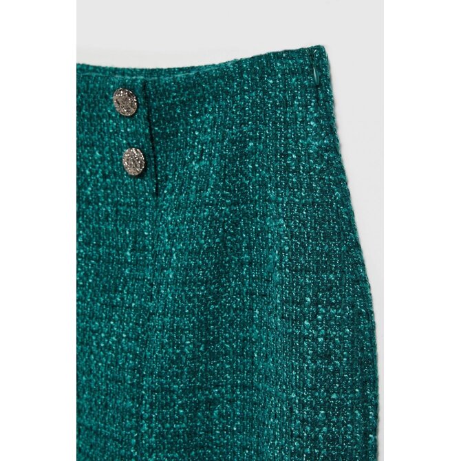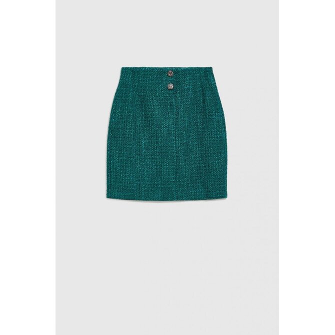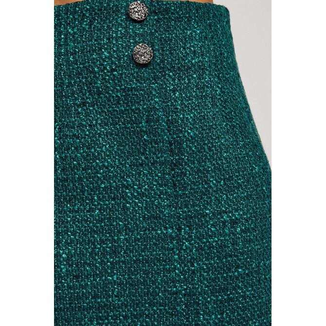 Sukně v tvídovém stylu s ozdobnými knoflíky, smaragdová