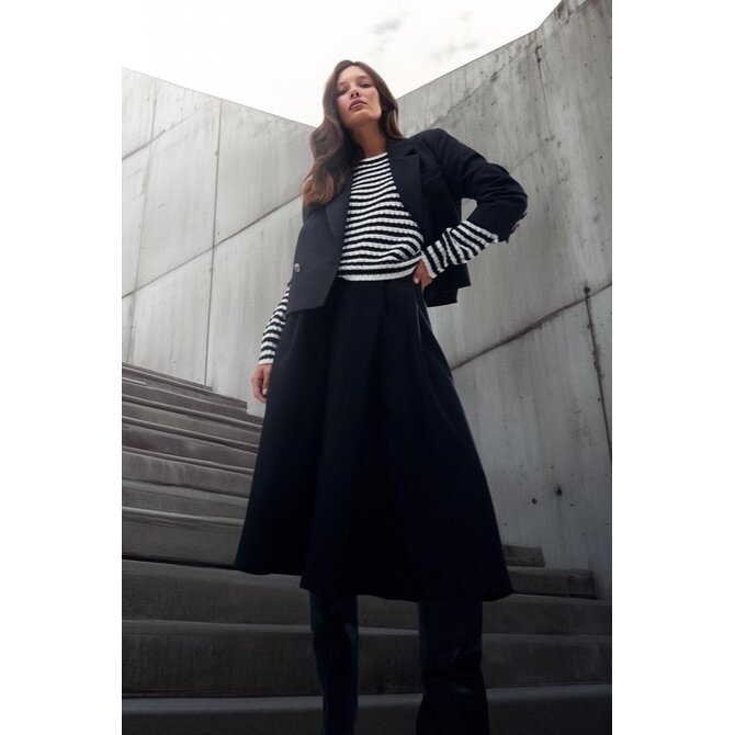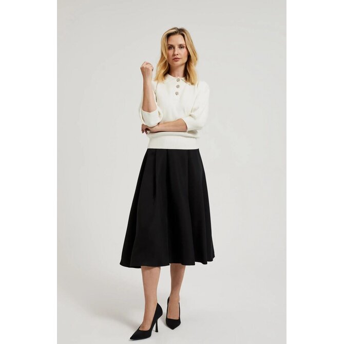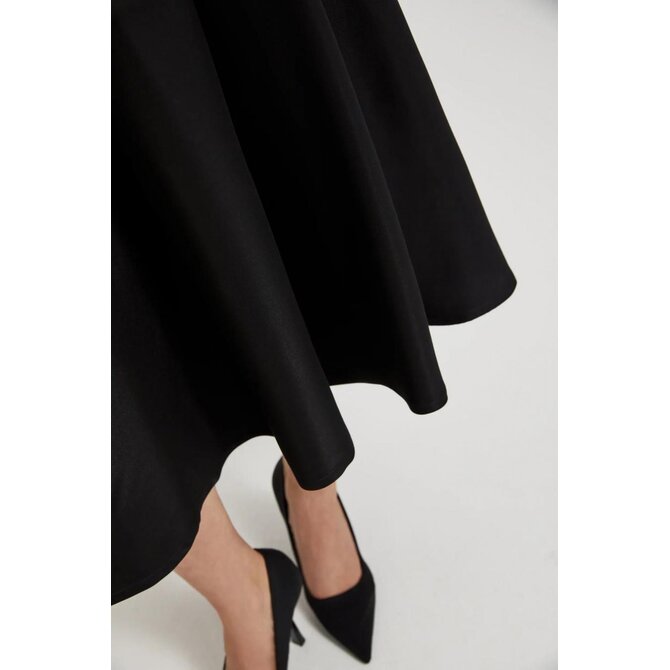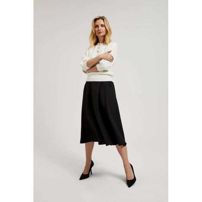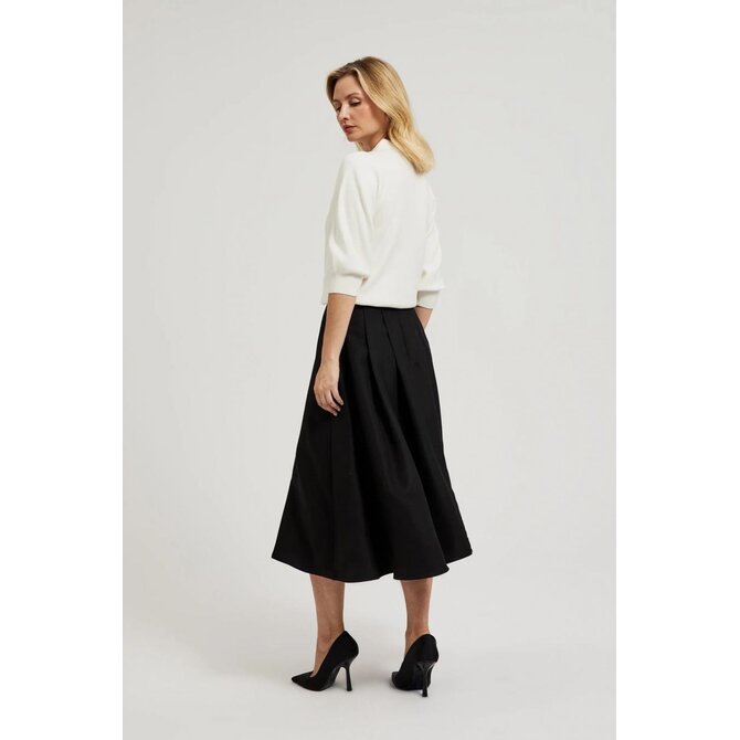 Dámská černá sukně je perfektní volbou pro ženy, které oceňují eleganci a pohodlí. Vyrobeno z hladkého polyesteru, má vysoký pas, který zdůrazňuje ženskou siluetu. Díky rozšířenému střihu je sukně nejen stylová, ale také velmi pohodlná. Zip umožňuje snadné nazouvání a svlékání. Sukně bude perfektní volbou pro mnoho příležitostí, od obchodních schůzek, přes romantické večeře až po večery s přáteli. Skvěle se hodí jak k elegantní halence, tak k volnému svetru. Díky délce ke kolenům je univerzální a hodí se k mnoha různým stylům.