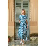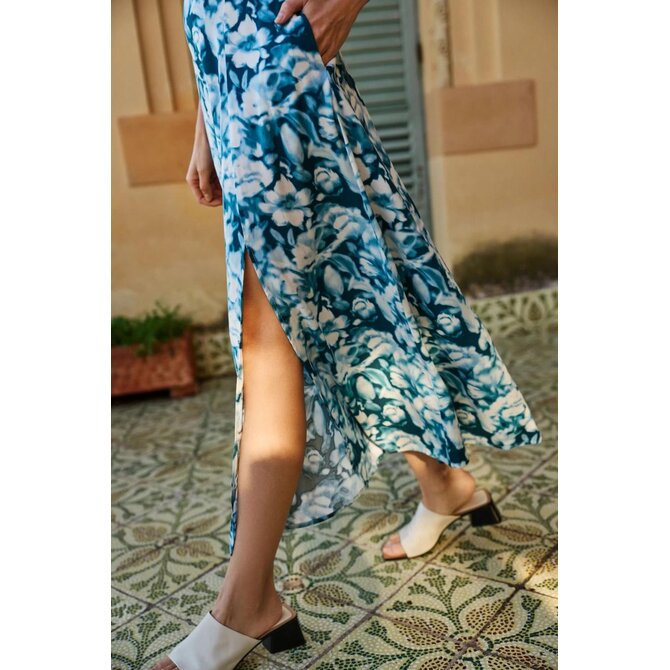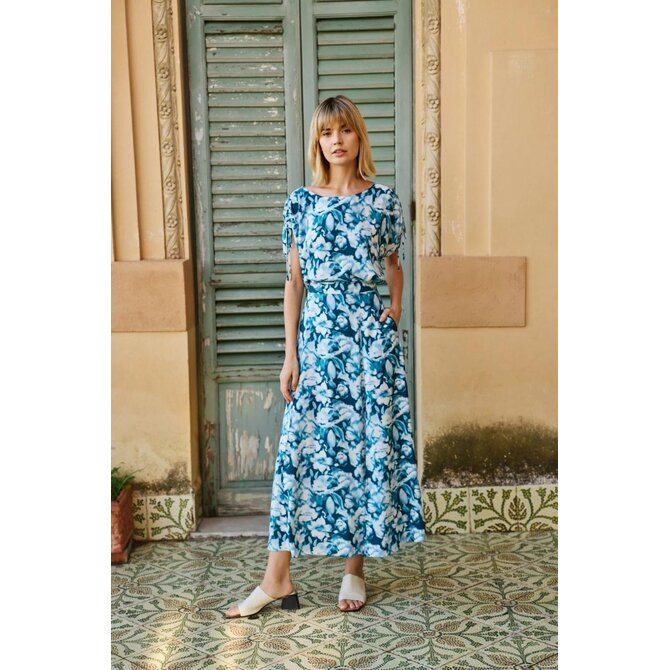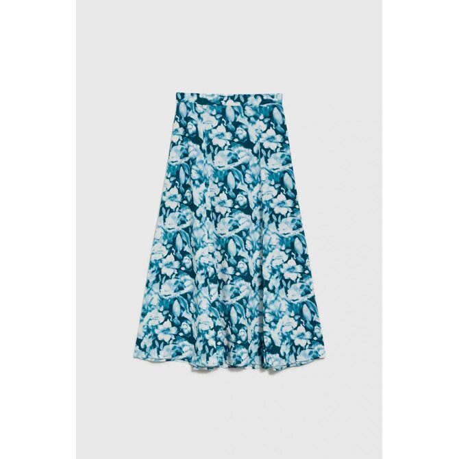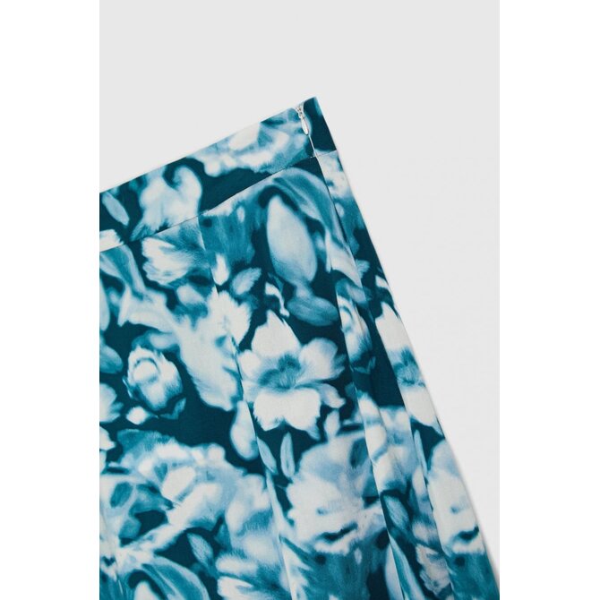 100% VISKÓZA Modro zelená trapézová sukně v módní směsi vzorů je návrh, který zdůrazňuje individuální styl a zaručuje pohodlí při nošení díky příjemné viskóze na dotek. Zapínání na zip zajišťuje pohodlí při používání a jemné přizpůsobení postavě. Délka do poloviny lýtek. Lehká tkanina poskytuje prodyšnost a volnost, díky čemuž je produkt ideální volbou pro teplejší dny. Univerzální charakter dělá ze sukně ideální volbu pro společenská setkání, práci nebo rodinné oslavy. Perfektně se hodí ke klasické bílé košili, přiléhavému svetru nebo jednobarevné halence. Vyplatí se ji kombinovat s elegantními vysokými podpatky, kotníkovými botami nebo pohodlnými balerínkami, a vytvořit tak každodenní i formálnější styl.