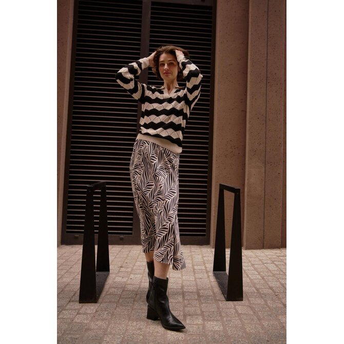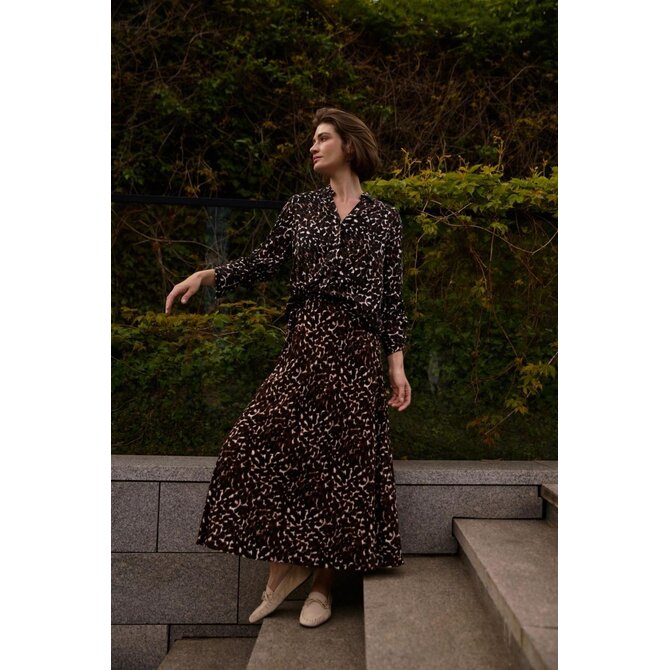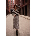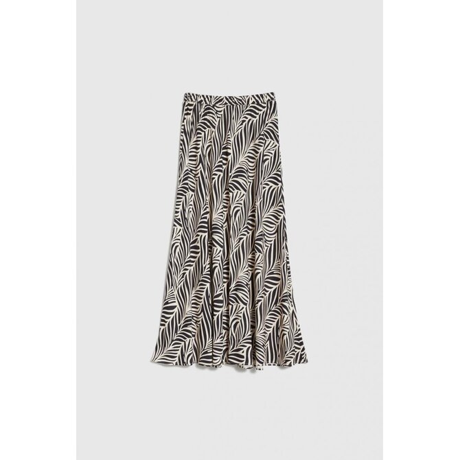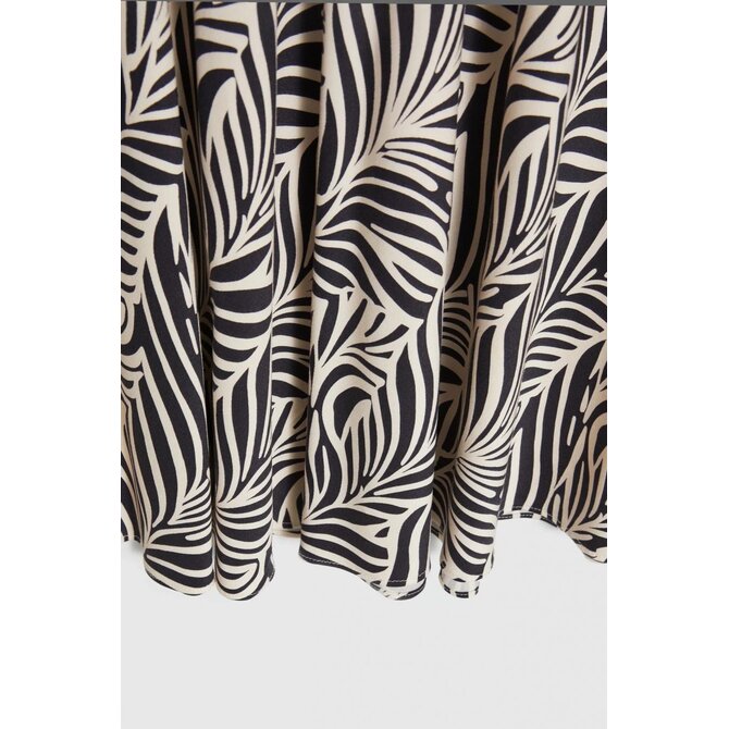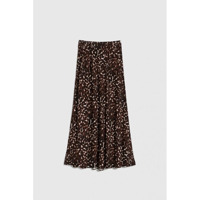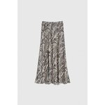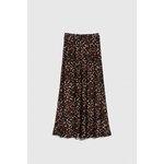 100% VISKÓZA Tato rozšířená maxi sukně v hnědých odstínech se pyšní výrazným zvířecím potiskem. Elastický pas zajišťuje pohodlí, přizpůsobí se postavě a zaručí celodenní nošení. Lehká tkanina s převahou přírodní viskózy příjemně obepíná pokožku a umožňuje jí dýchat. Sukně po kotníky se s každým pohybem jemně pohupuje a vytváří pocit lehkosti a pohodlí. Tento střih je ideální na letní procházky, setkání s přáteli nebo romantické večeře. Perfektně se hodí k přiléhavému topu, lněné košili nebo lehkému svetru a sandálem nebo espadrilkám.