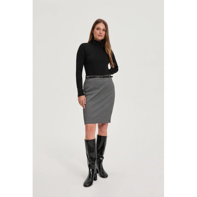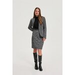 72,8 % POLYESTER 15,2 % METALICKÁ NIT 10 % VISKÓZA 2 % ELASTAN Tato šedá sukně s módním melanžovým vzorem zaujme svým minimalistickým designem a nadčasovou elegancí. Rovný střih opticky zeštíhluje siluetu, zatímco délka po kolena decentně zvýrazňuje nohy. Ozdobný pásek dodává sukni sofistikovaný nádech a jedinečný styl. Praktický zip zajišťuje snadné oblékání a perfektní střih. Materiál je vyroben z měkkého, nemačkavého polyesteru, který zajišťuje celodenní pohodlí. Ideální volba pro obchodní schůzky, práci nebo elegantní příležitosti. Perfektně se hodí ke klasické košili, přiléhavému roláku nebo stylovému saku. Perfektně se hodí k jehlovým podpatkům i k ležérní obuvi a vytvoří tak stylový a ženský vzhled pro každou příležitost. Šedá melanžová sukně s ozdobným páskem je nezbytností v šatníku každé ženy.