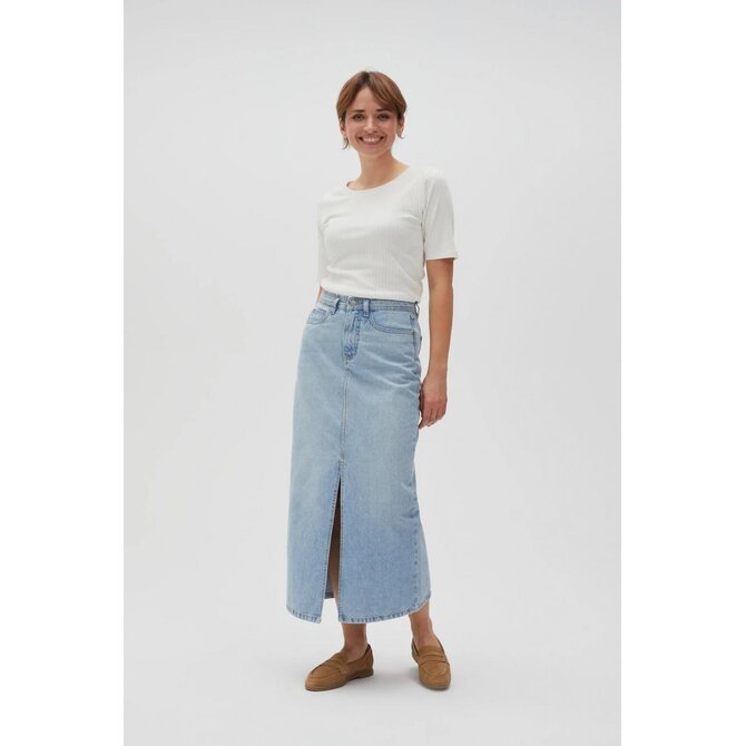 100% BAVLNA Modrá dámská sukně, bez vzoru, z hladké džínové bavlny. Má praktické kapsy, atraktivní poklopec a jednoduchý střih. Zapínání na zip. Perfektní pro mnoho příležitostí, skvělé pro neformální schůzky a každodenní styling. Skvěle bude ladit jak s lehkým tričkem, tak s elegantní halenkou. Hodí se ke sportovní obuvi, teniskám a sandálům na vysokém podpatku.