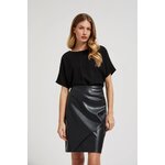 Dámská černá sukně je perfektní volbou pro každou ženu, která hledá elegantní a stylový kousek oblečení. Sukně z hladkého úpletu má volánky, které zdůrazňují ženskou siluetu. Díky vysokému pasu a asymetrickému střihu je sukně nejen módní, ale také velmi příjemná na nošení. Zip umožňuje snadné a pohodlné nazouvání. Tato sukně bude ideální pro mnoho různých příležitostí - jak pro setkání s přáteli, tak pro formálnější události. Můžete ji kombinovat s elegantní košilí a vysokými podpatky nebo s volnějším topem a teniskami. Díky univerzální černé barvě bude sukně ladit s mnoha dalšími prvky vašeho šatníku, což vám umožní vytvořit mnoho různých stylů.