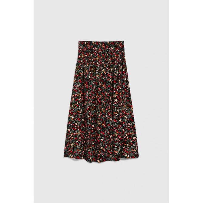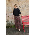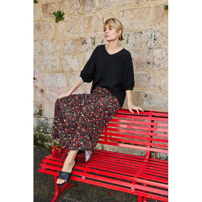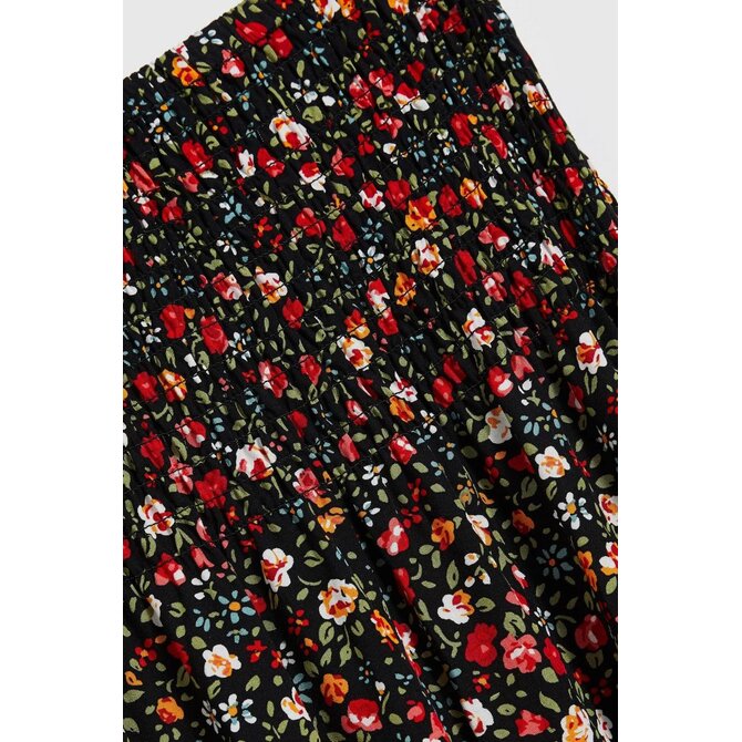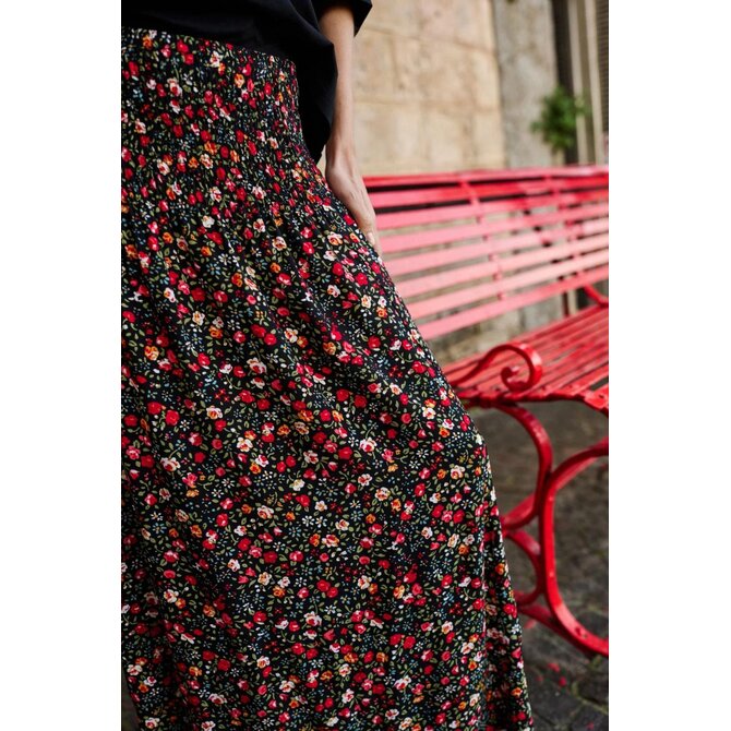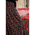 100% VISKÓZA Černá, vícebarevná květinová sukně přitahuje pozornost svým módním lichoběžníkovým střihem, který decentně zdůrazňuje siluetu a poskytuje volnost pohybu. Elastická guma v pase zaručuje pohodlí při nošení po celý den a přizpůsobuje se různým typům postav. Jemná, vzdušná viskóza činí látku příjemnou na dotek a ideální pro teplejší dny. Sukně v délce do poloviny lýtek je ideální na letní procházky, setkání s přáteli nebo neformální výlety do města. Skvěle se hodí jak k jednobarevnému topu nebo lehké košili, tak i ke klasické džínové bundě a plochým sandálům. Jedná se o nezbytný kousek v šatníku každé ženy, který zdůrazní individuální styl a dodá každému stylingu kouzlo.