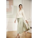 100% POLYESTER Olivová sukně je perfektní volbou pro každou ženu, která si cení pohodlí a stylu. Vyrobeno z vysoce kvalitního polyesteru, zaručuje pohodlí při nošení a odolnost. Elastický pas zajišťuje dokonalé padnutí a trapézový střih zdůrazňuje ženskou siluetu. Díky délce do půli lýtek je sukně ideální pro mnoho příležitostí, jak do práce, tak na setkání s přáteli. Módní sukně se strukturovaným vzorem se bude skvěle hodit jak k elegantní halence na pracovní schůzku, tak k volnému svetru na procházku do parku. Díky své univerzálnosti ji lze spárovat jak s podpatky, tak se sportovní obuví. Tohle musí mít v šatníku každá žena, která si cení pohodlí a módního vzhledu.