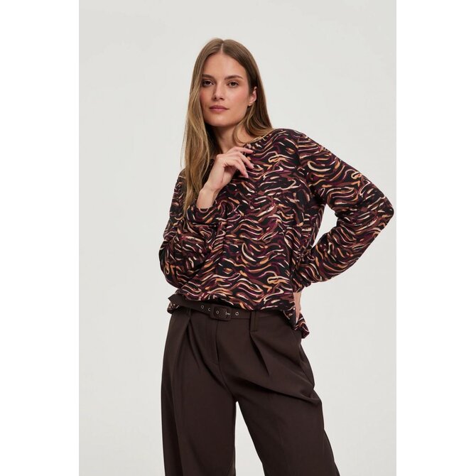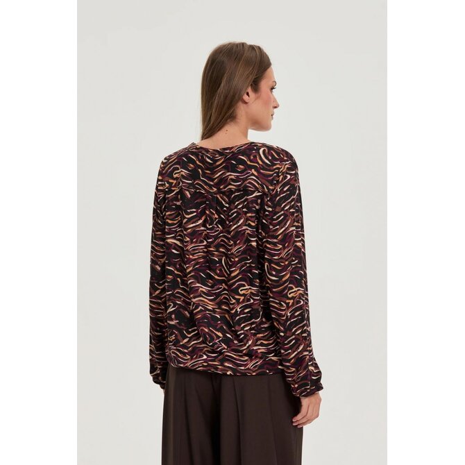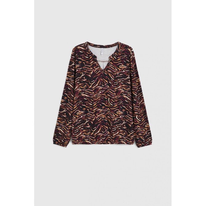 95% POLYESTER, 5% ELASTAN Vzorovaný černý svetr. Dlouhé rukávy a rovný střih s výstřihem do V.