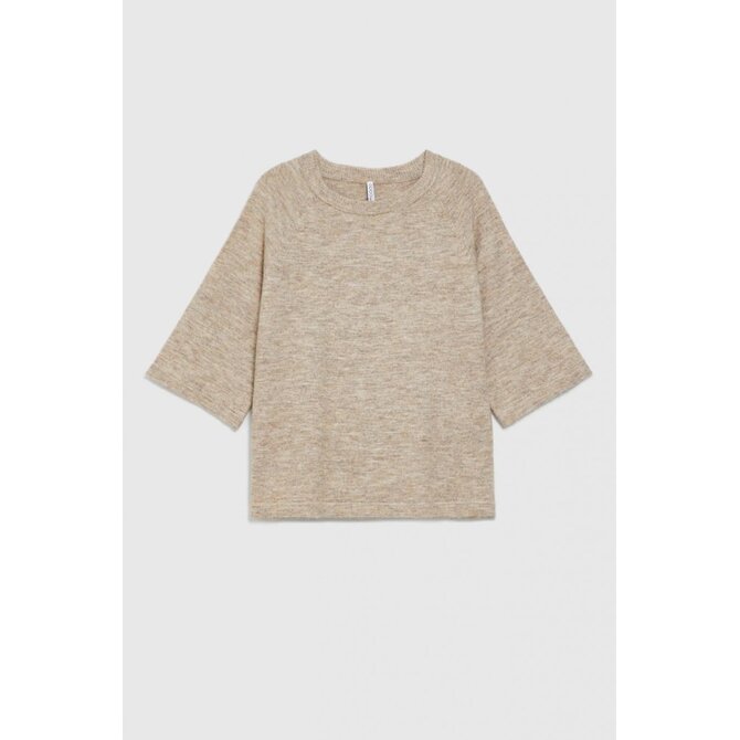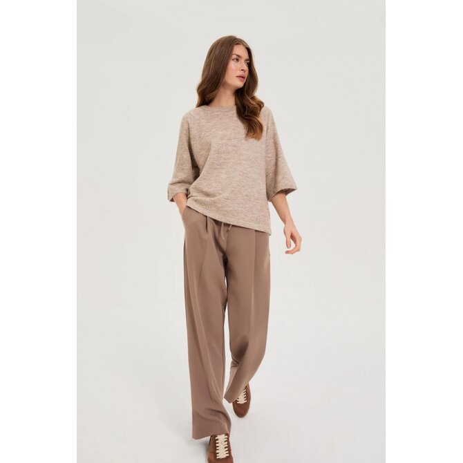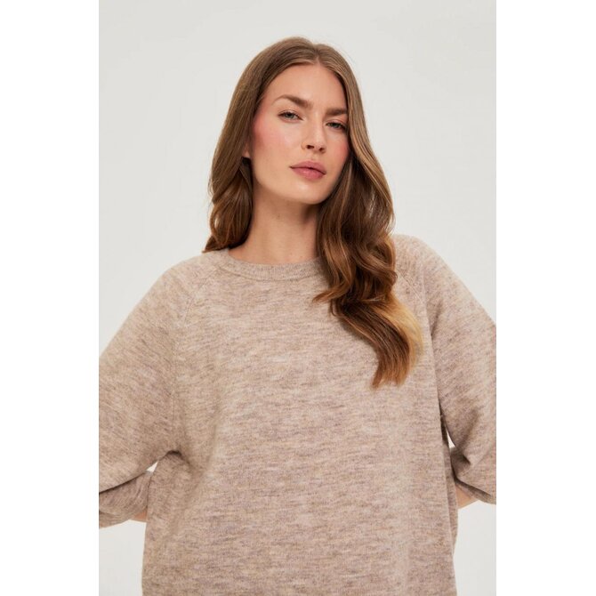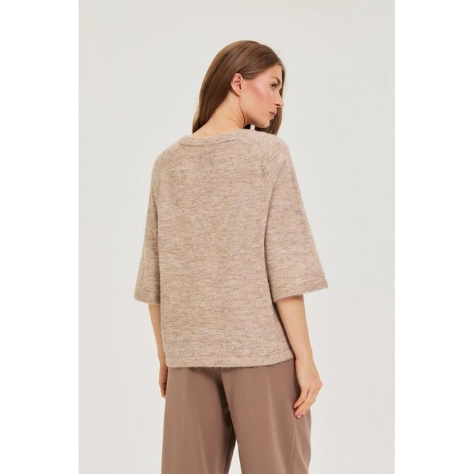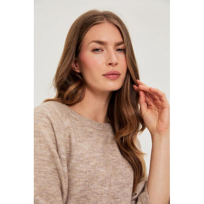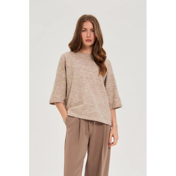 Světle hnědý svetr s tříčtvrtečním rukávem