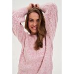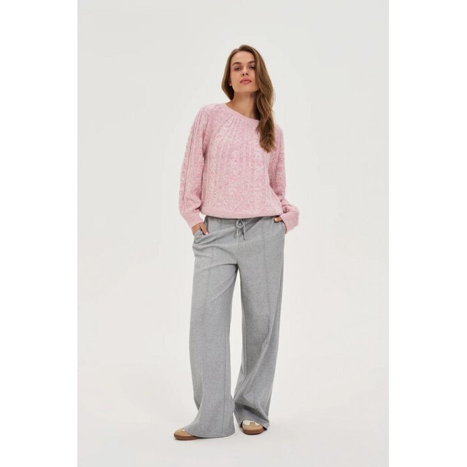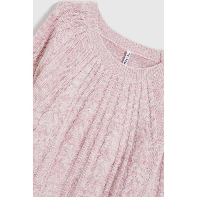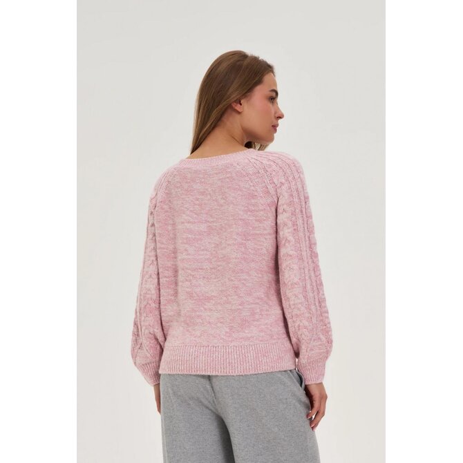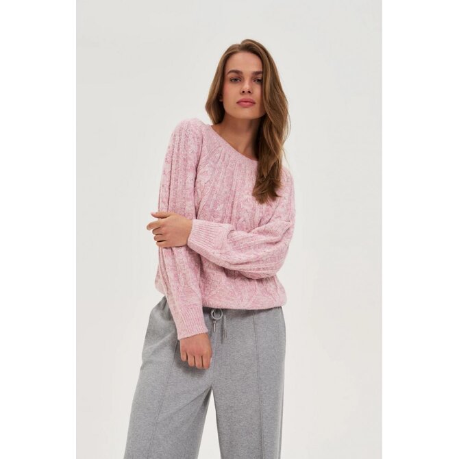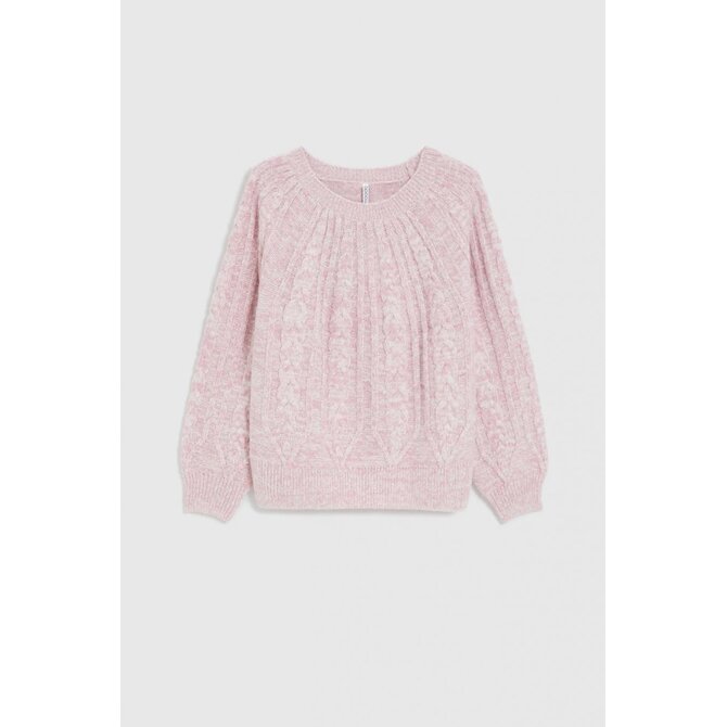 Růžový svetr s copánkovým vzorem