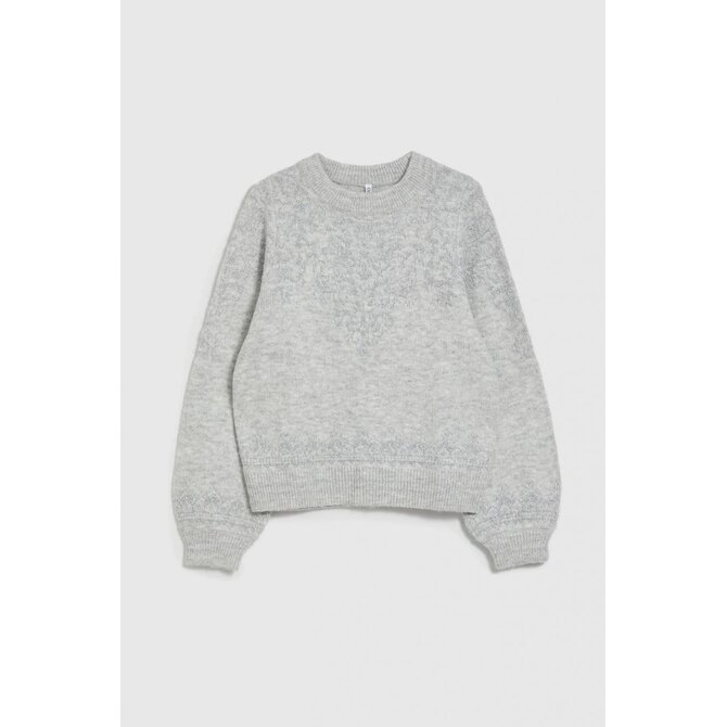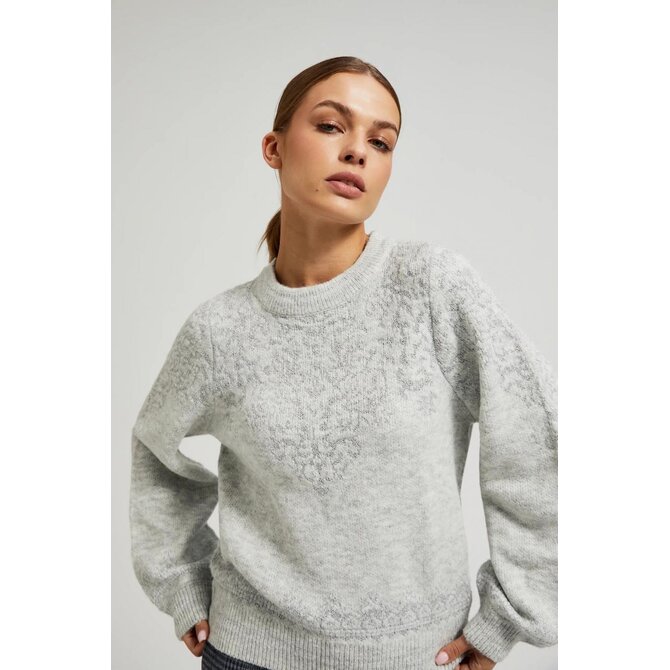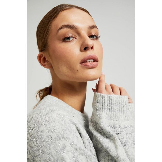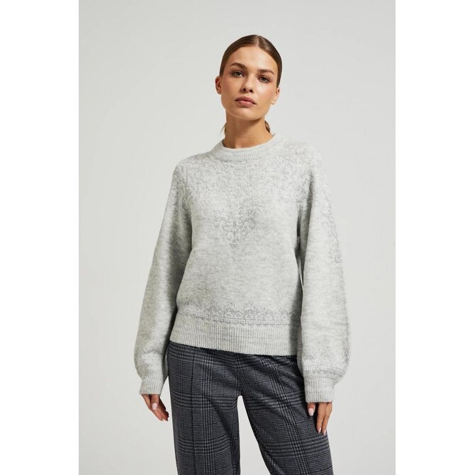 Šedý svetr s ornamentem je perfektní volbou pro každou ženu, která si cení elegance a pohodlí. Tento klasický svetr s dlouhým rukávem a kulatým výstřihem, vyrobený z akrylu, s metalickou nití dodávající jemný lesk, vás nejen zahřeje, ale bude i stylový. Tento svetr je ideální pro každodenní nošení, do práce nebo na setkání s přáteli. Můžete jej nosit k džínům, sukni nebo elegantním kalhotám. Díky svému univerzálnímu designu se bude hodit k mnoha stylům a dodá jim jedinečné kouzlo. Tento šedý svetr s ozdobou, který se hodí pro každé roční období, nesmí chybět ve vašem šatníku.