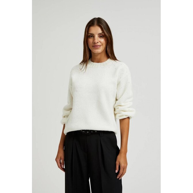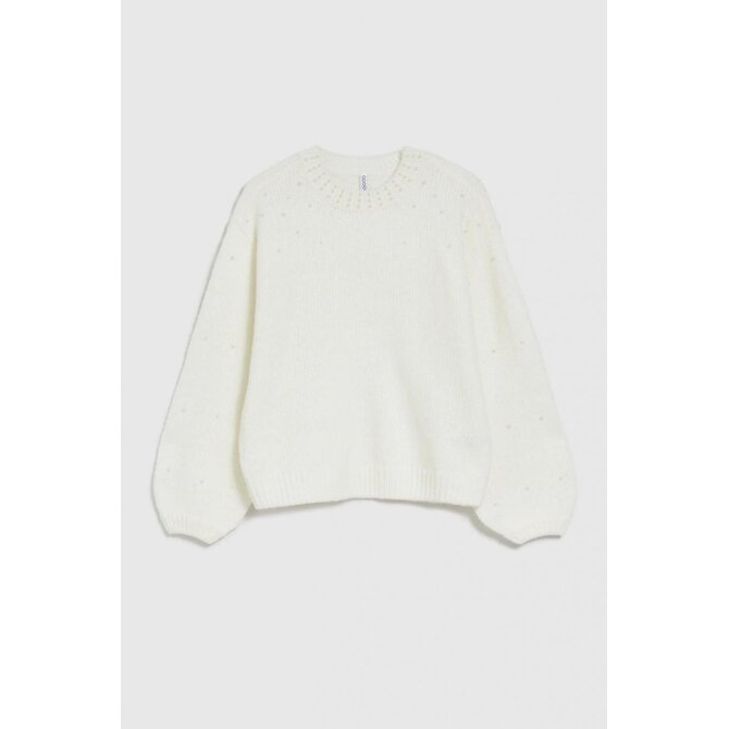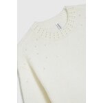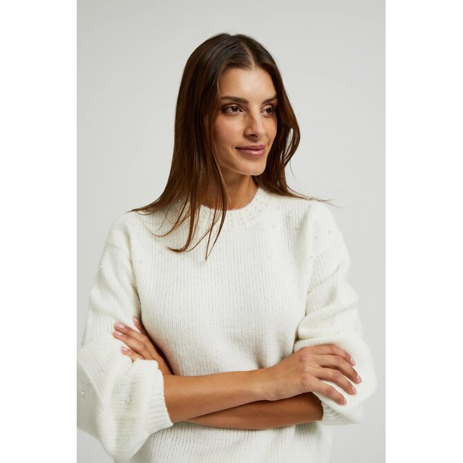 63% AKRYL, 31% POLYESTER, 6% VLNA Elegantní krémový svetr je perfektní volbou pro chladnější dny. Vyrobeno z akrylu, hladké, bez vzoru, zajišťující pohodlí při nošení. Zdobené klasickými perlami, které mu dodávají jedinečný charakter. Rozšířené rukávy dodávají lehkost a eleganci. Tento svetr je ideální pro mnoho příležitostí, dokonale se hodí k elegantní sukni i džínám. Dokonale se hodí jak k vysokým podpatkům, tak teniskám, což vám umožní vytvářet různé styly. Mimořádně univerzální a nadčasový bude dokonalým doplňkem dámského šatníku