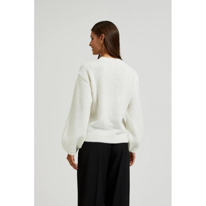 Bílý svetr s nabíranými rukávy a vlnou