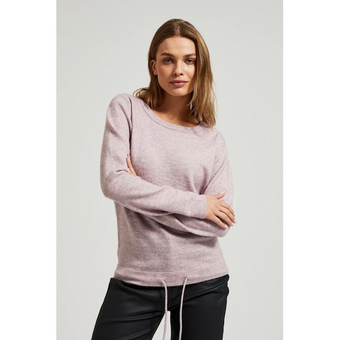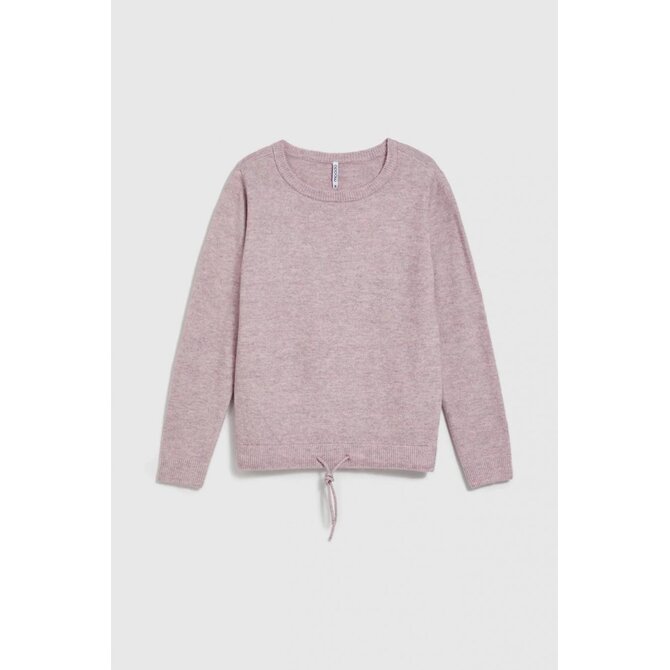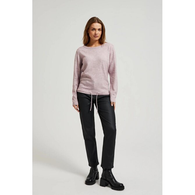 svetr s kulatým výstřihem a zavazováním v pase