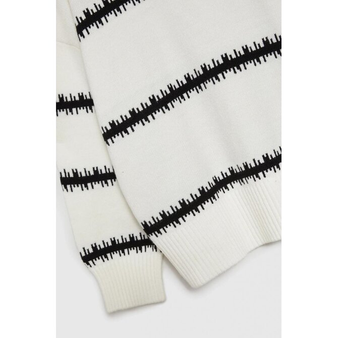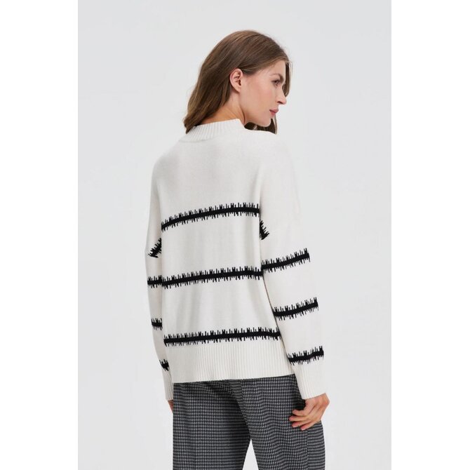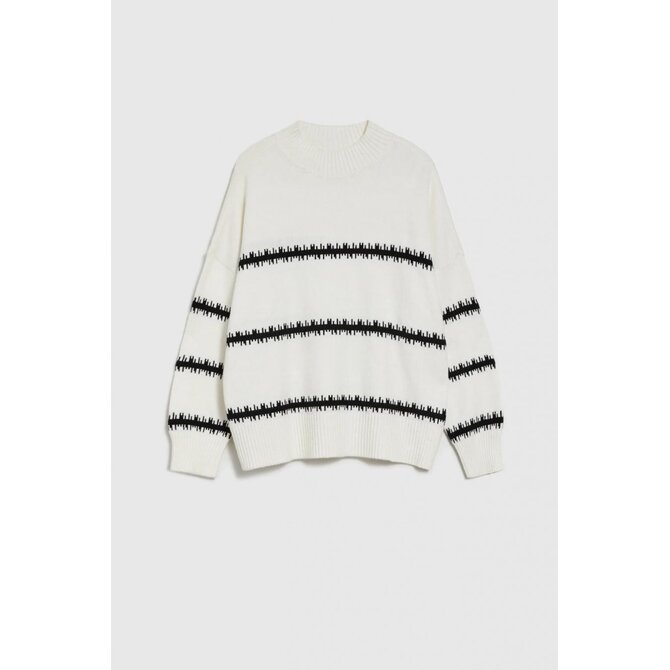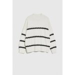 Pruhovaný svetr se spuštěnými rameny, bílý