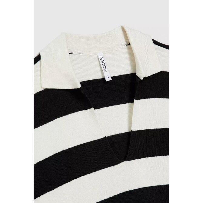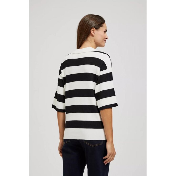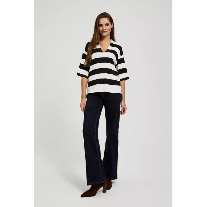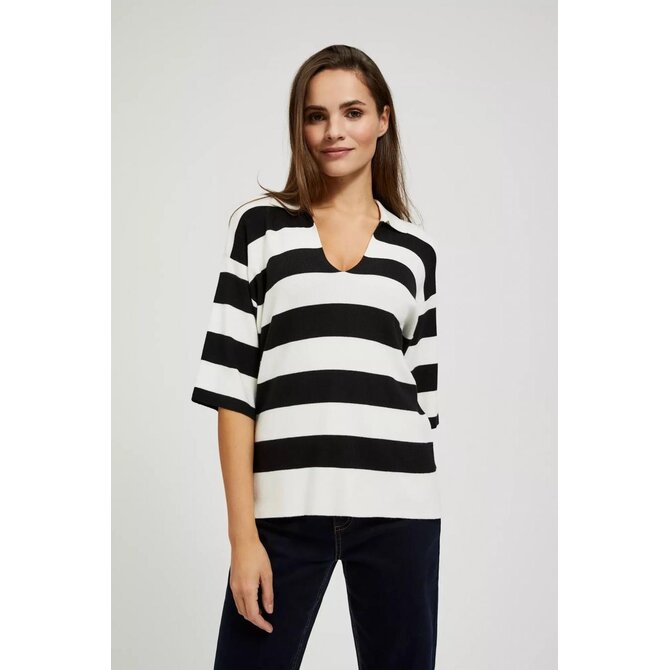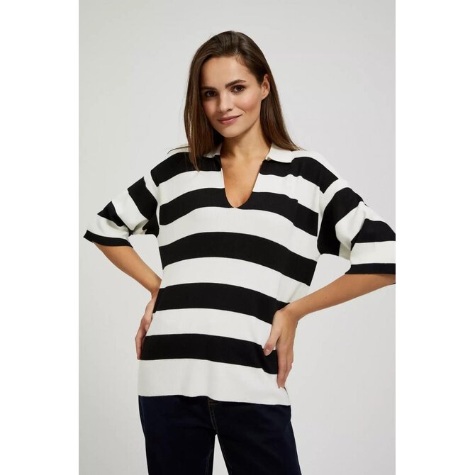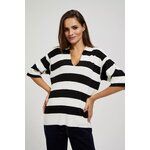 Svetr s širokými pruhy, krátkými rukávy a výstřihem do V