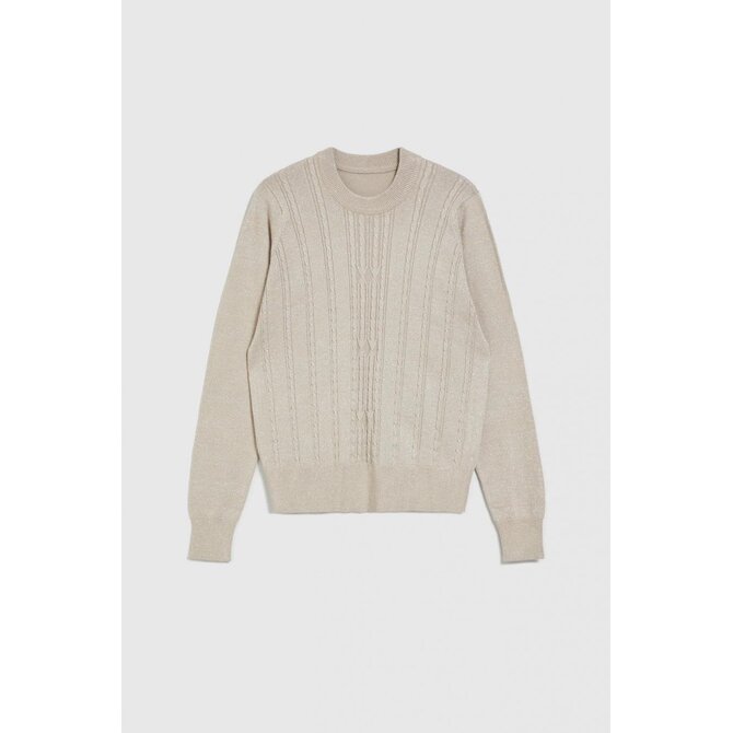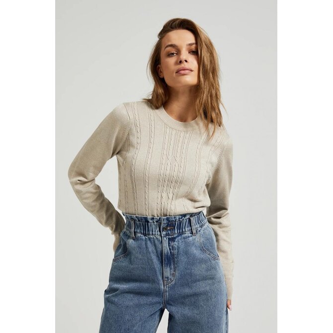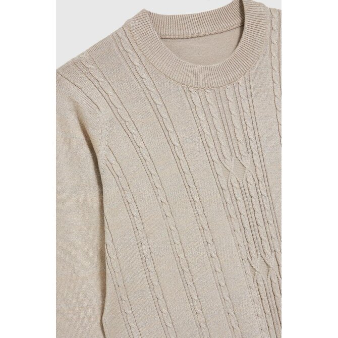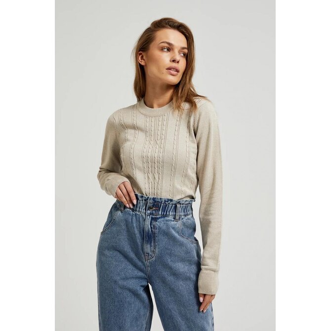 Béžový svetr s dlouhým rukávem a kulatým výstřihem