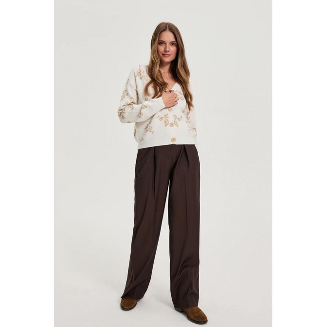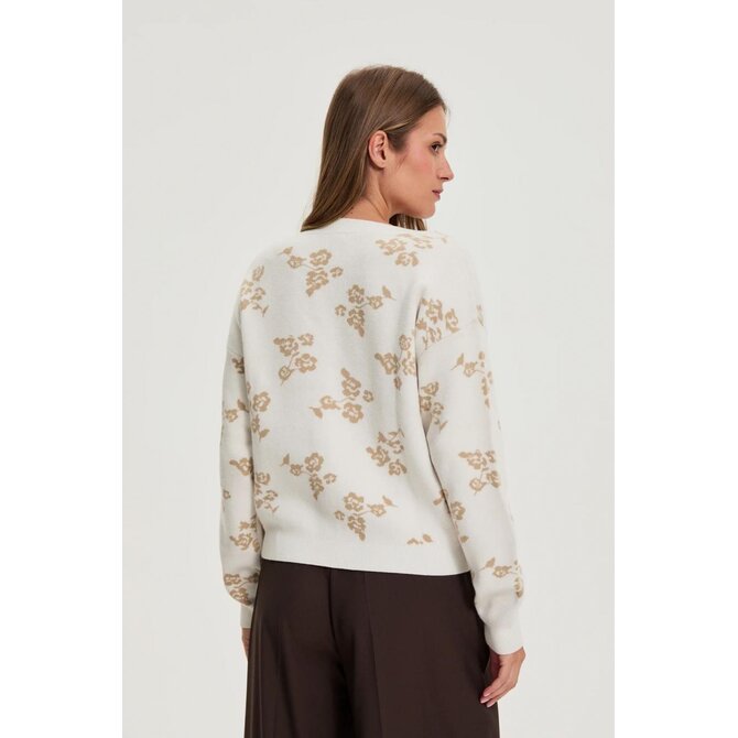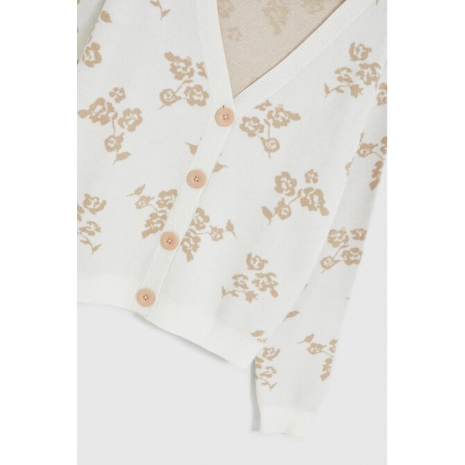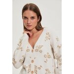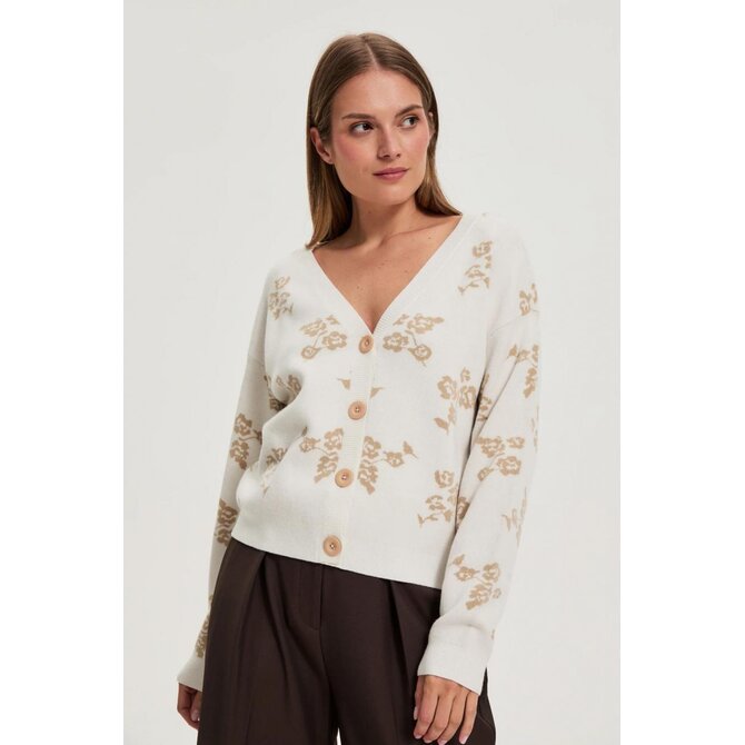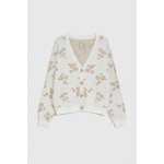52% VISKÓZA, 28% POLYESTER, 20% POLYAMID Tento dámský kardigan v béžových odstínech, zdobený decentním květinovým motivem, okouzlí svou jemností a elegancí. Měkký, příjemný úplet s nádechem viskózy zaručuje celodenní pohodlí. Otevřený střih s dlouhými rukávy a spuštěnými rameny dokonale padne postavě a zdůrazní její přednosti. Klasický výstřih do V a ozdobné knoflíky dodávají svetru ženský nádech a dokonale odpovídají současným trendům. Ideální volba pro obchodní schůzky, rodinné oslavy nebo romantický výlet. Krásně se hodí k elegantním kalhotám a midi sukni, ale i k ležérním džínům nebo lehkým, vzdušným šatům. Tento krémový kardigan s květinovým potiskem doplní každý šatník a vnese do vašeho vzhledu nádech ženského šarmu.
