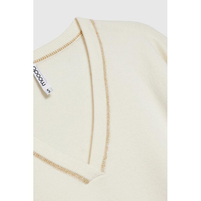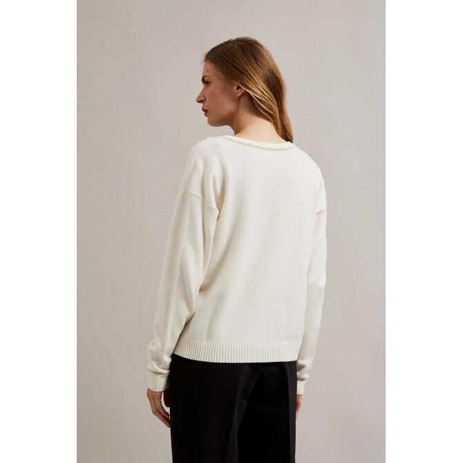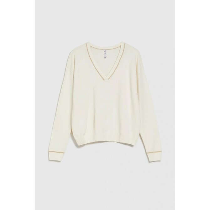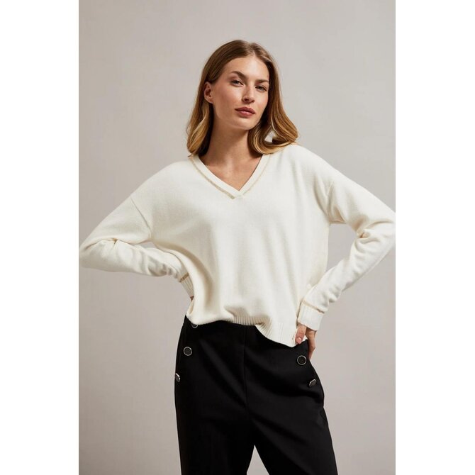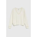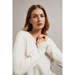 Krémový svetr s výstřihem do V a dlouhým rukávem