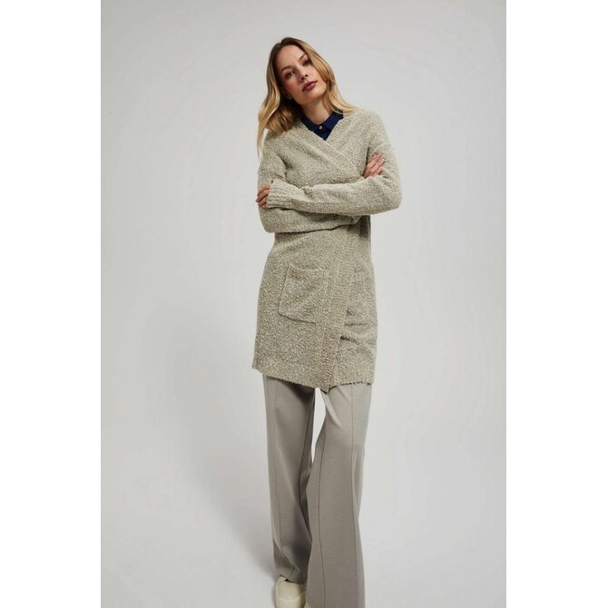 Béžový svetr je dokonalou nabídkou pro každou elegantní ženu. Vyrobeno z vysoce kvalitního akrylu, poskytuje mimořádnou měkkost a pohodlí. Jeho strukturní žebrovaný vzor mu dodává jedinečný charakter, zdůrazňující individuální styl. Kardigan s kapsami je nejen praktický, ale dodává i ležérní a ležérní vzhled. Dlouhý rukáv zaručí teplo i v chladných dnech a výstřih do V dodává celé eleganci. Je to vynikající volba pro mnoho příležitostí, jak na denní bázi, tak na formálnější výlety. Skvěle se hodí k džínám i sukni nebo šatům. Vyberte si tento svetr a cítíte se výjimečně v každé situaci