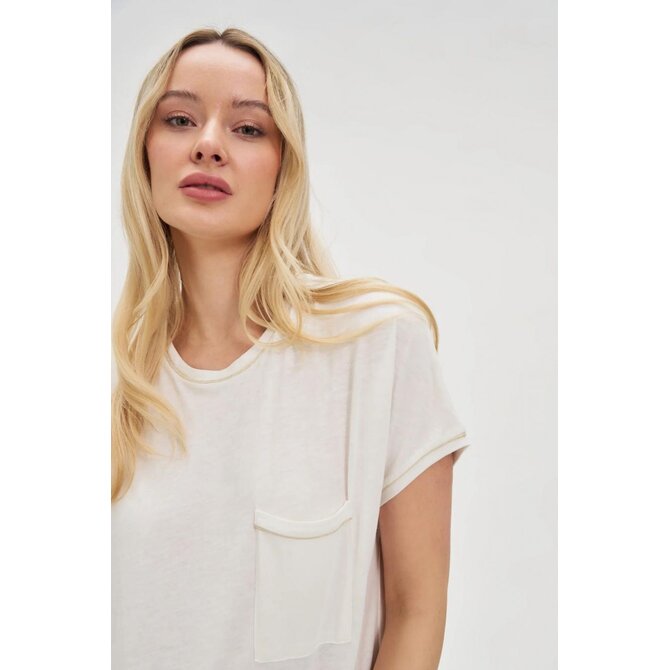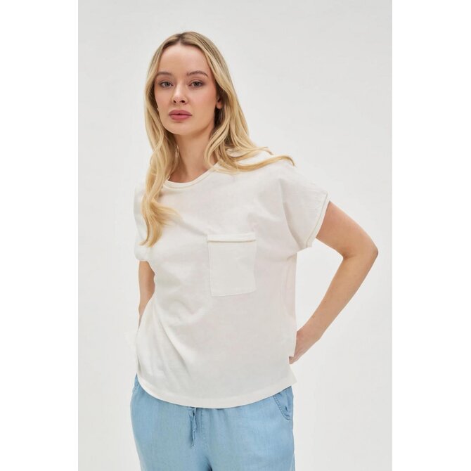 100% BAVLNA Krémová halenka v ecru odstínu je perfektní volbou pro milovnice minimalismu a elegance. Volný, oversized střih s spuštěnými rameny zajišťuje volnost pohybu a pohodlí po celý den. Kulatý výstřih krásně zvýrazňuje krk a praktická kapsa na hrudi zdůrazňuje moderní styl a funkčnost. Přírodní bavlna dělá halenku měkkou, vzdušnou a příjemnou na pokožku. Je ideální pro každodenní procházky, setkání s přáteli, ale i pro ležérní kancelářský styling. Hodí se k lehkým džínům, lněným kalhotám, sukním a kraťasům a vytváří tak módní sety na jaro a léto.