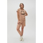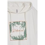 95% BAVLNA, 5% ELASTAN Béžová mikina, bez vzoru, z hladké bavlny. Má potisk, krátké rukávy. Mikina se obléká přes hlavu a má kapuci. Ideální pro každodenní nošení, ať už do školy, do práce nebo na schůzky s přáteli. Hodí se k džínám, sukním i sportovním kalhotám.