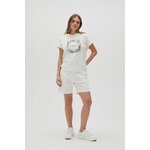 95% BAVLNA, 5% ELASTAN Dámská mikina v bílé barvě z hladké bavlny. Má originální potisk, krátké rukávy a kapuci, kterou lze zavázat. Díky elastickým páskům se perfektně přizpůsobí tělu a zajistí pohodlí a volnost pohybu. Tato módní mikina je ideální pro každodenní nošení i pro ležérní styly. Perfektně se hodí k džínám, sukním i kraťasům a vytváří tak jedinečné kombinace. Produkt je ideální pro jarní nebo letní večery a dodá styl každému ženskému šatníku.