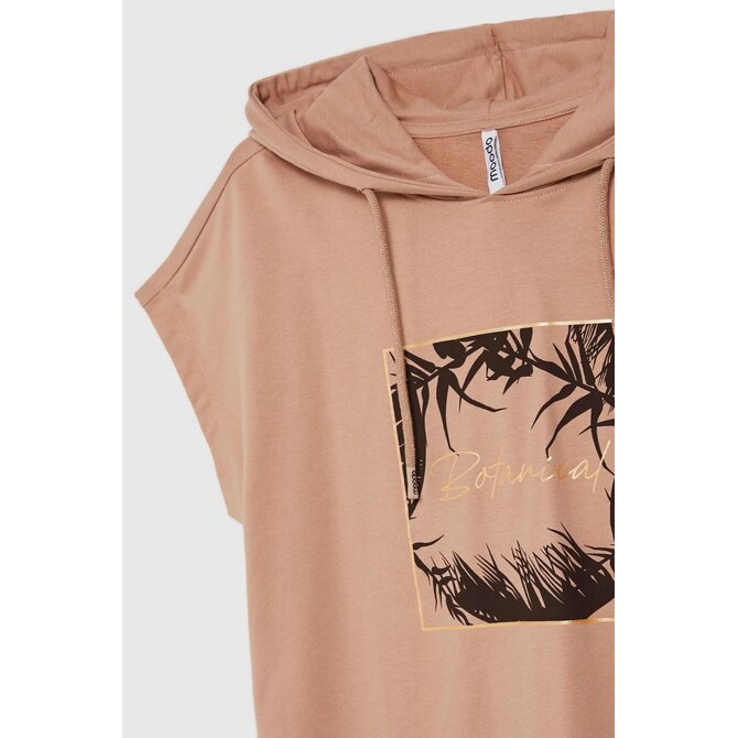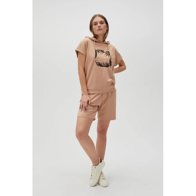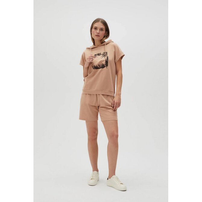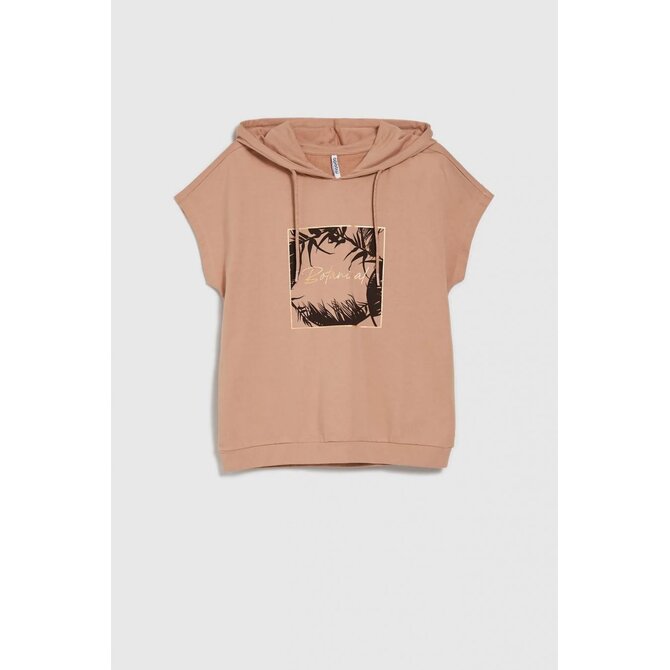 Mikina s kapucí a krátkým rukávem, béžová