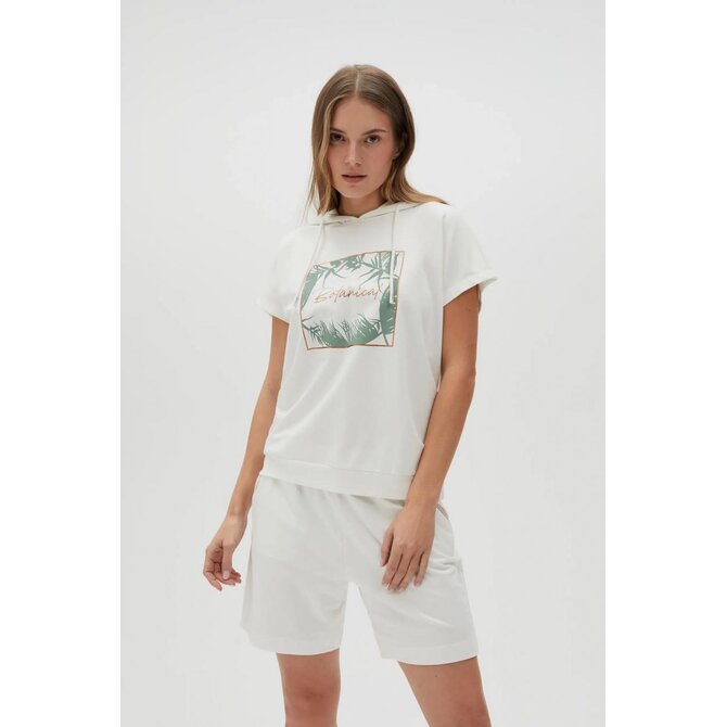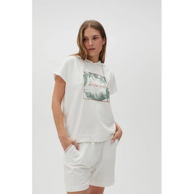 Mikina s kapucí a krátkým rukávem, bílá