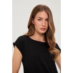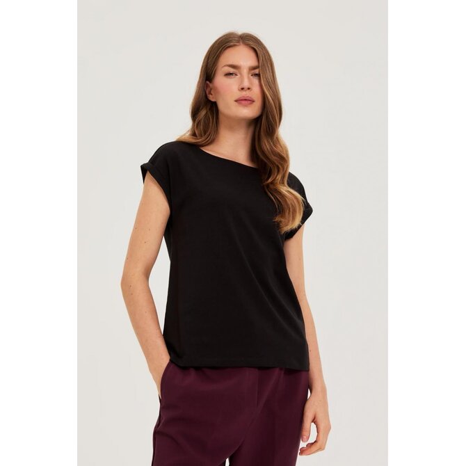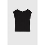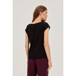95% BAVLNA, 5% ELASTAN Tato černá halenka je perfektní volbou pro ženy, které si cení pohodlí a nadčasového minimalismu. Hladká textura a volný střih se spuštěnými rameny zajišťují volnost pohybu a celodenní pohodlí. Výstřih bateau dekolt decentně zdůrazňuje a dodává vzhledu nádech elegance. Přírodní bavlna zaručuje prodyšnost a příjemný pocit na pokožce. Je ideální volbou pro schůzky s přáteli, každodenní výlety nebo letní procházky. Perfektně se hodí ke klasickým džínům, midi sukním nebo kraťasům a vytváří tak všestranný základ pro různé styly. Černá jednobarevná halenka je nezbytným kouskem v šatníku každé ženy a umožňuje vám snadno vytvářet módní outfity pro různé příležitosti.