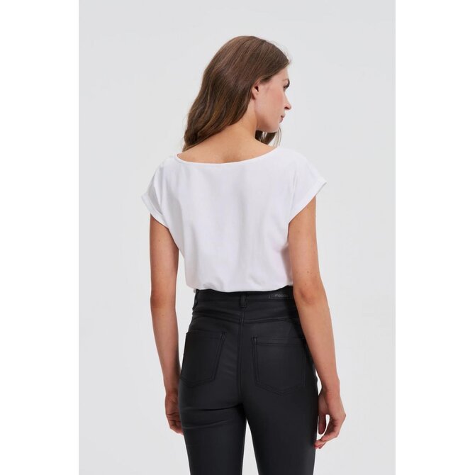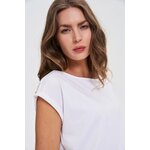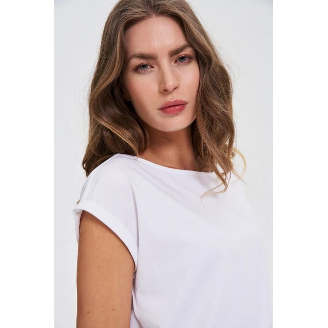95% BAVLNA, 5% ELASTAN. Tato bílá halenka s krátkými rukávy zaujme svou hladkou texturou a lehkostí, což zaručuje pohodlí. Výstřih ve tvaru lodičky dodává ženský nádech, zatímco přírodní bavlna umožňuje pokožce dýchat, což zajišťuje pohodlné nošení i v nejteplejších dnech. Materiál je nedráždivý a ideální pro ty, kteří si cení pohodlí a minimalismu. Je to perfektní volba na jarní a letní procházky, večerní výlet do města nebo setkání s přáteli. Perfektně se hodí k džínům, kraťasům, minisukním a chinos kalhotám. Hodí se jak k každodenním outfitům, tak i k elegantnímu saku, čímž vytvoří módní ležérní vzhled.